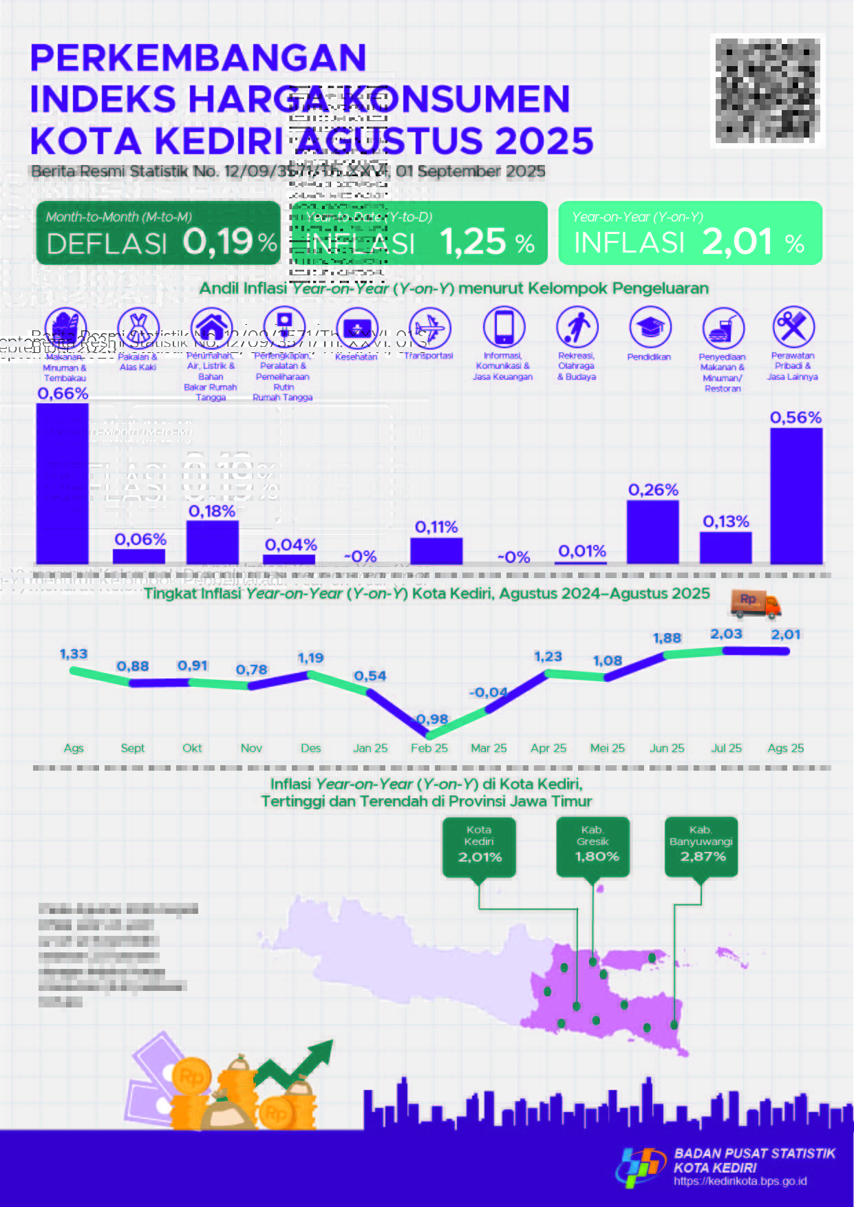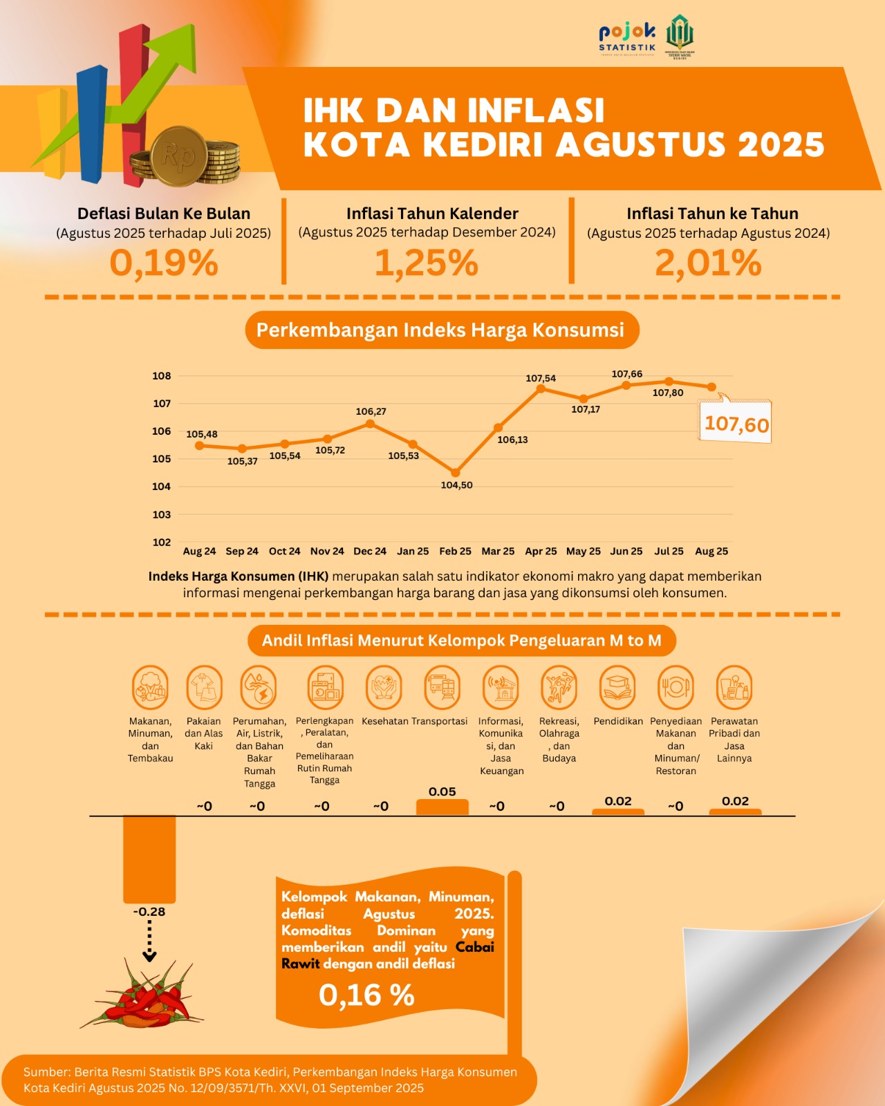 Perkembangan Indeks Harga Konsumen dan Inflasi Kota Kediri Agustus 2025