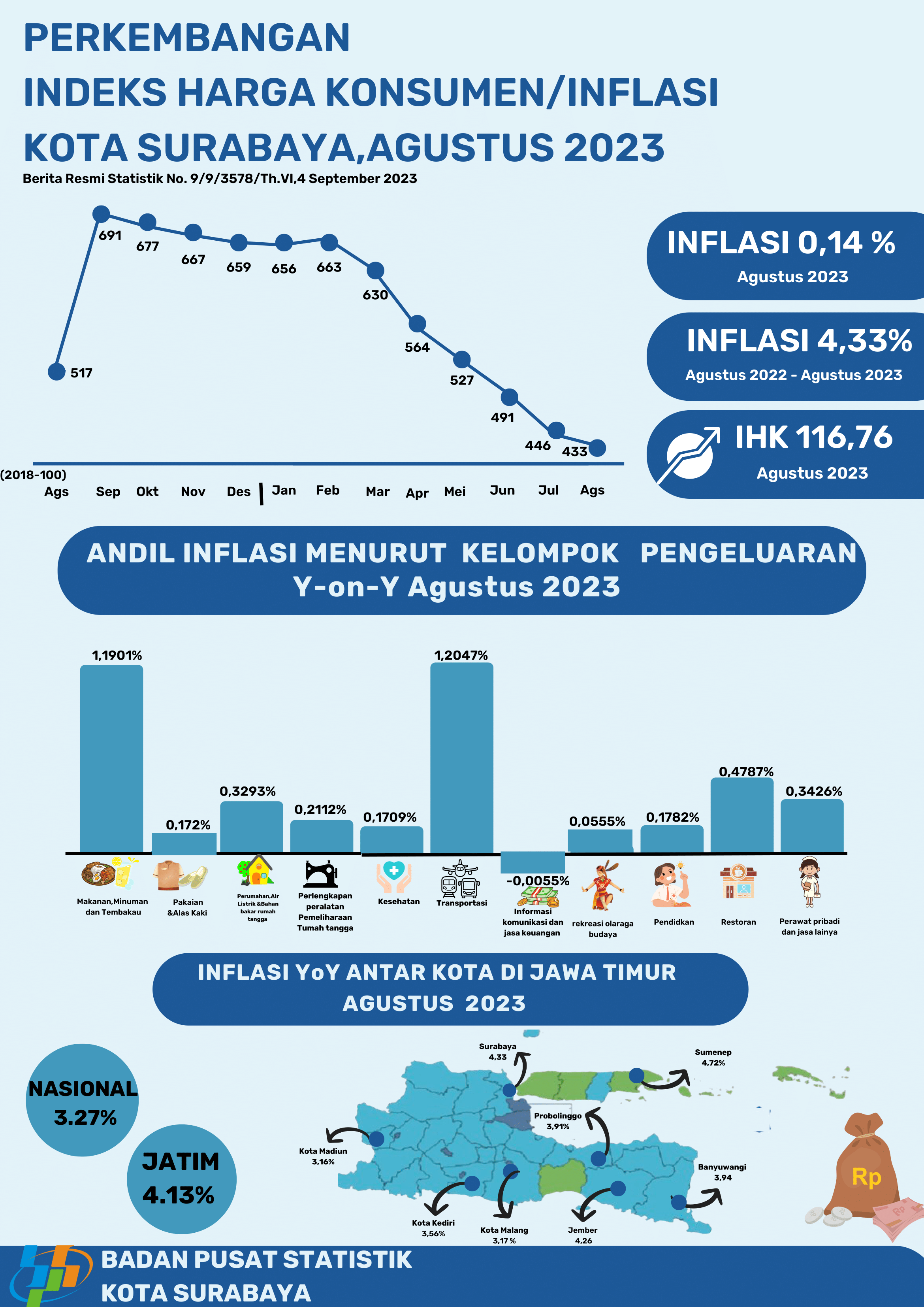 Indek Harga Konsumen (IHK) Agustus Kota Surabaya 2023