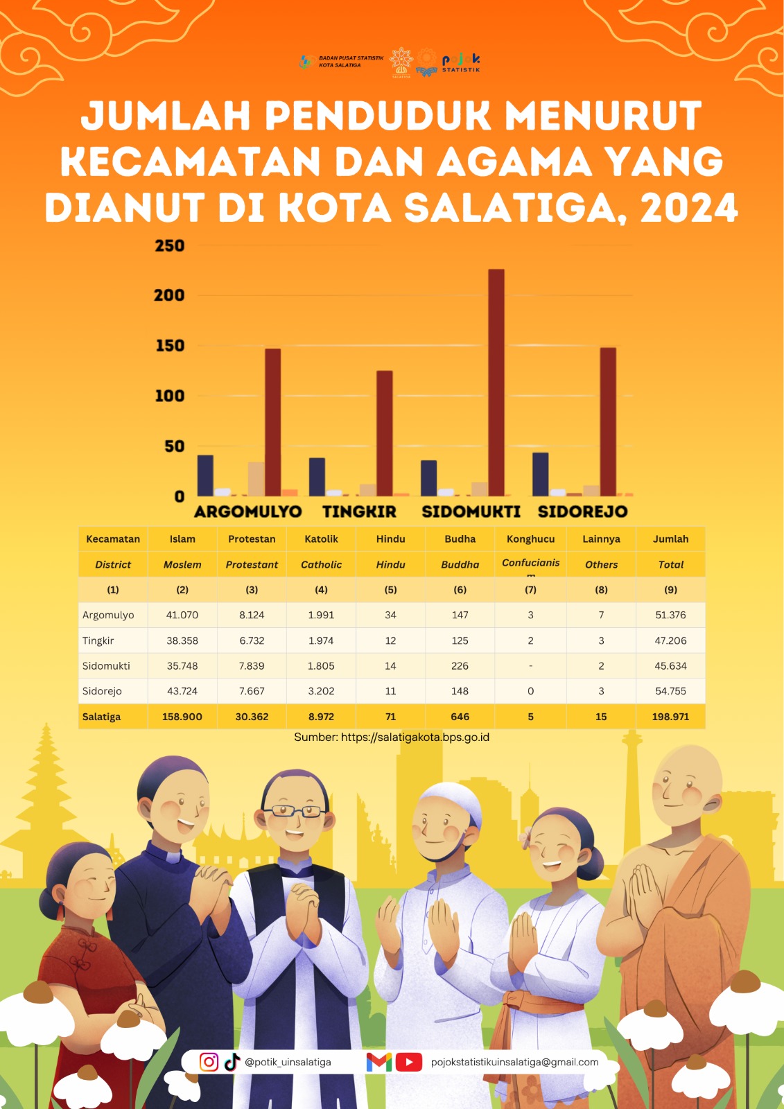 JUMLAH PENDUDUK MENURUT KECAMATAN DAN AGAMA YANG DIANUT DI KOTA SALATIGA, 2024