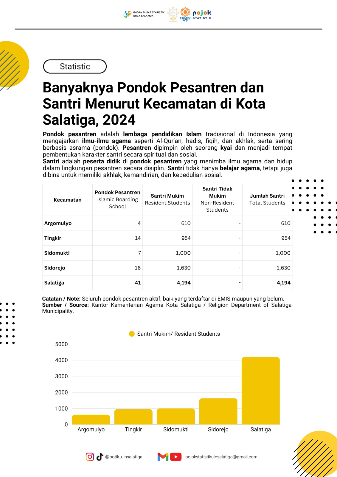 Banyaknya Pondok Pesantren dan Santri Menurut Kecamatan di Kota Salatiga, 2024