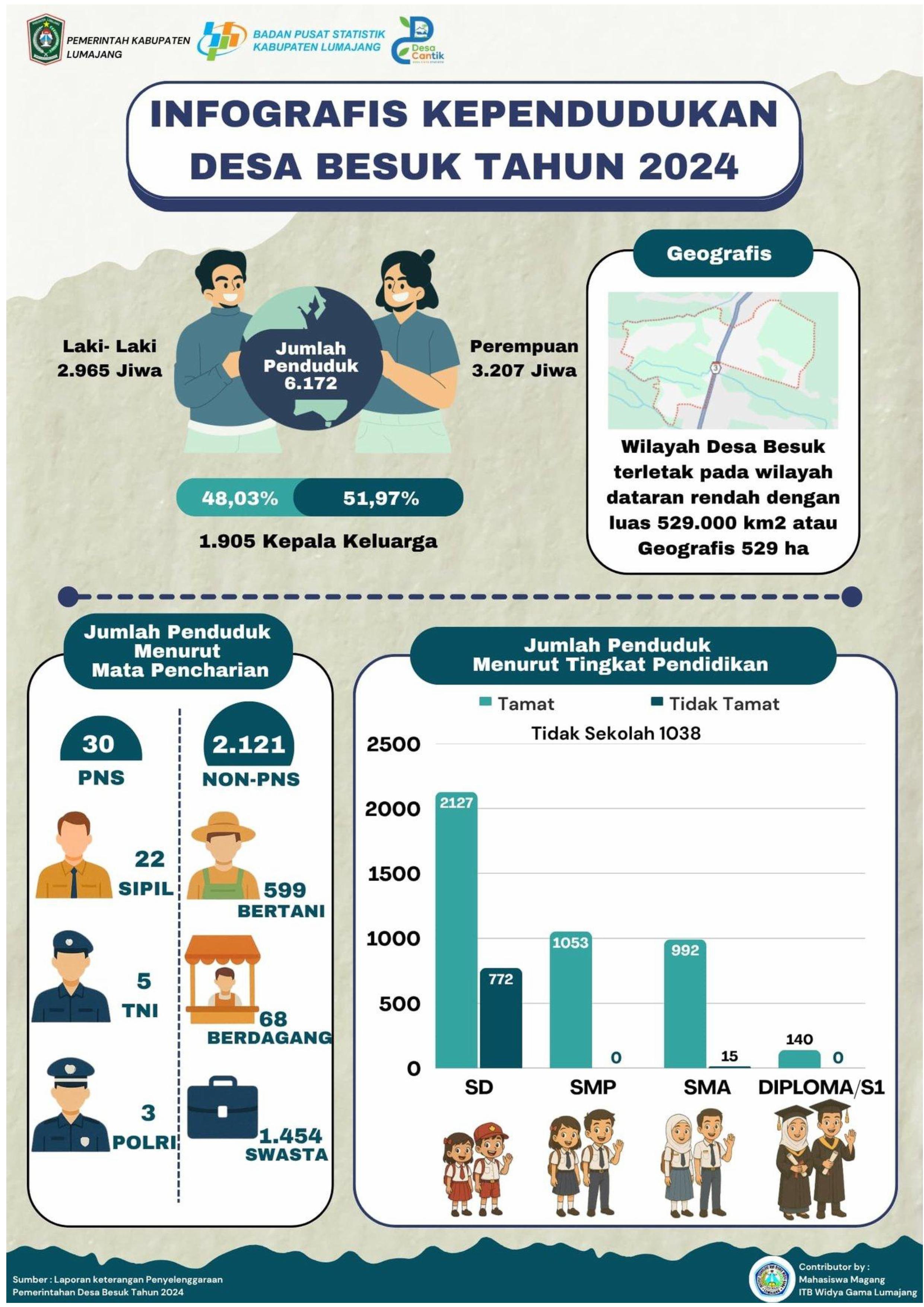 Infografis tentang Kependudukan Tahun 2024 di desa Besuk Kecammatan Tempeh Kabupaten Lumajang