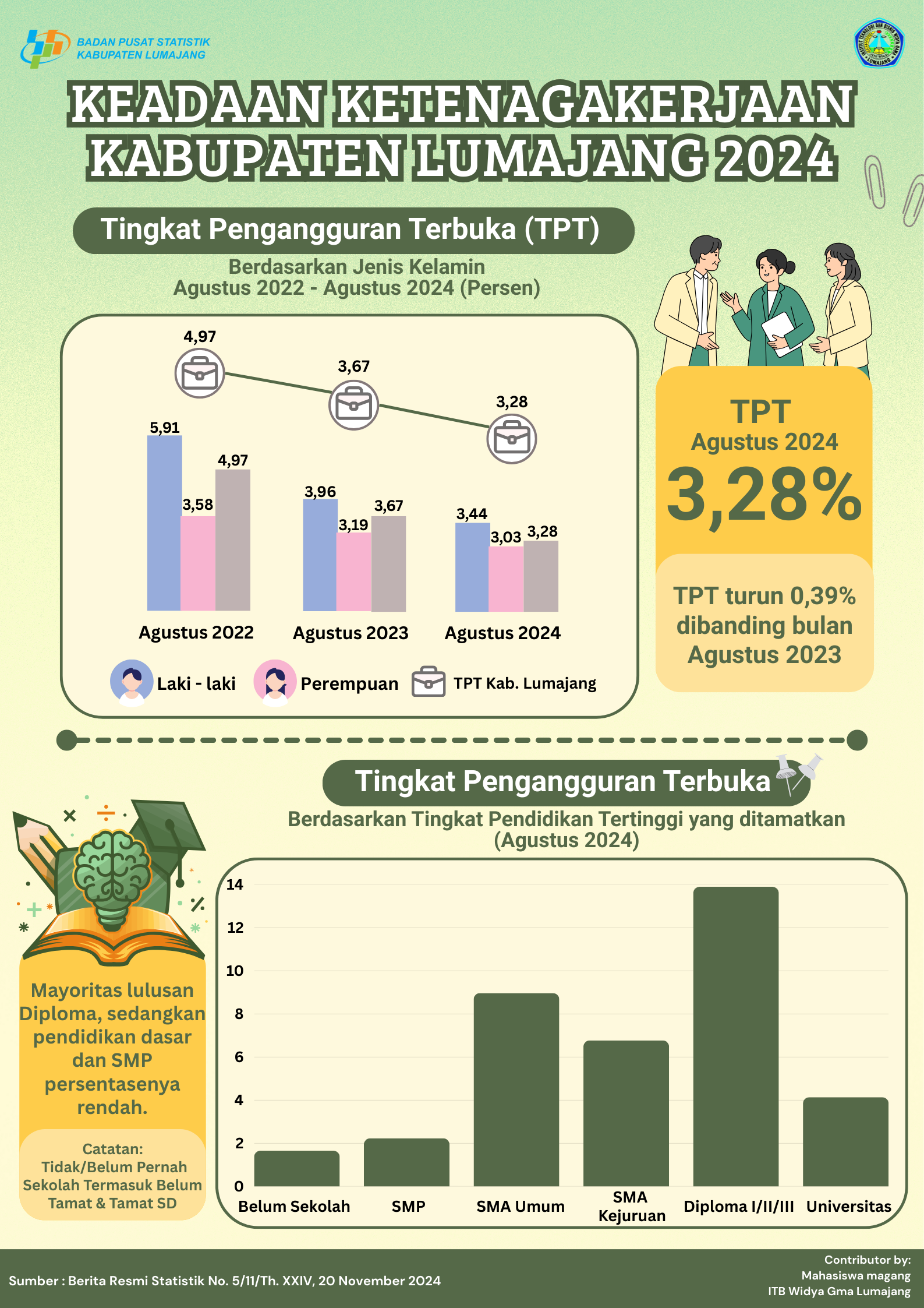 Keadaan Ketenagakerjaan Kabupaten Lumajang Tahun 2024 berisi tentang informasi Tingkat Pengangguran Terbuka (TPT),
