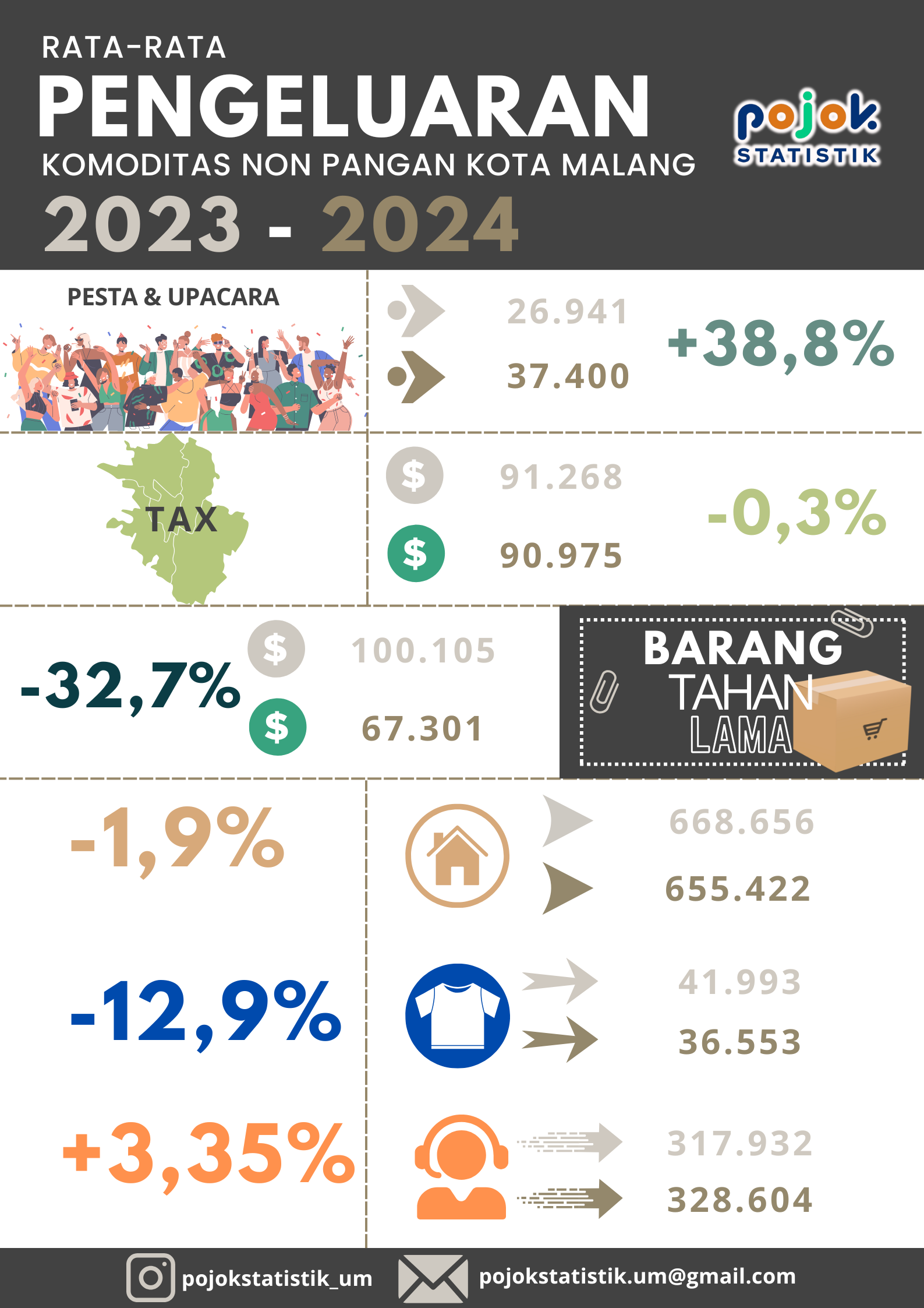 Data terkait rata-rata pengeluaran perkapita sebulan menurut kelompok komoditas bukan makanan di Kota Malang (Rupiah)