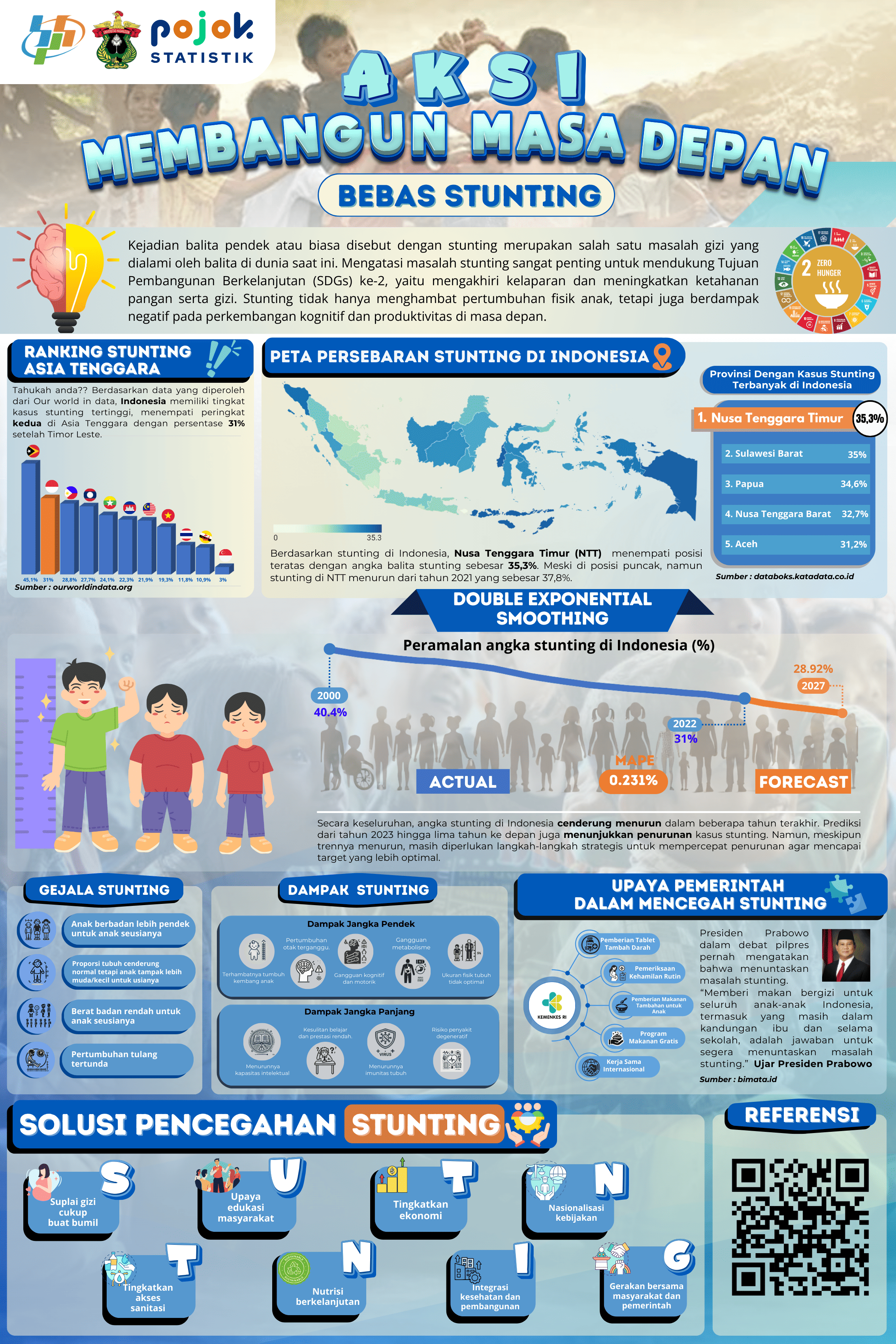 Infografis berjudul “Aksi Membangun Masa Depan Bebas Stunting” ini menggambarkan masalah stunting yang masih menjadi tantangan serius di Indonesia. Stunting adalah kondisi balita yang memiliki...