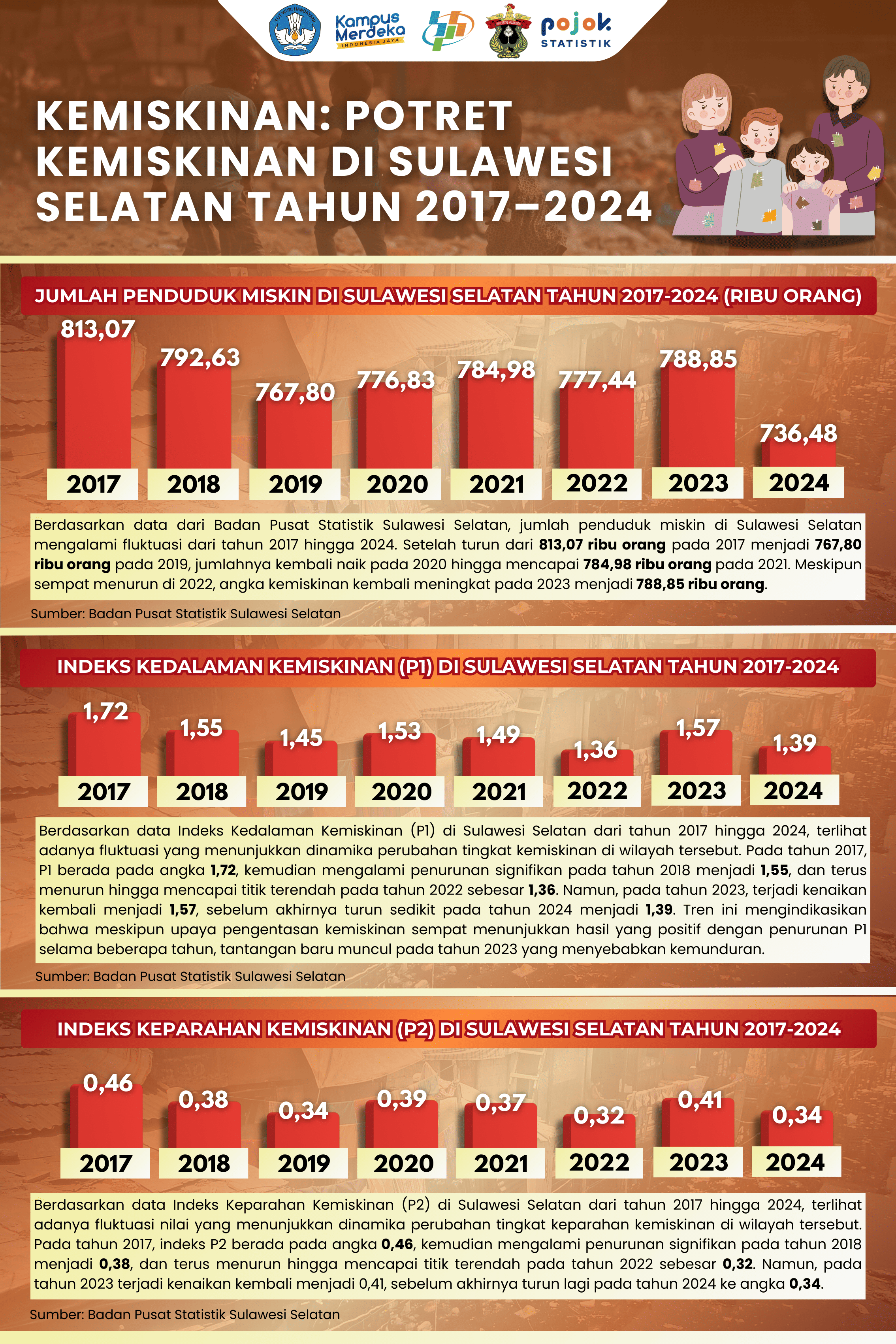 Berdasarkan data dari Badan Pusat Statistik Sulawesi Selatan, kondisi kemiskinan di wilayah ini selama tahun 2017 hingga 2024 menunjukkan tren fluktuatif namun secara keseluruhan membaik,...