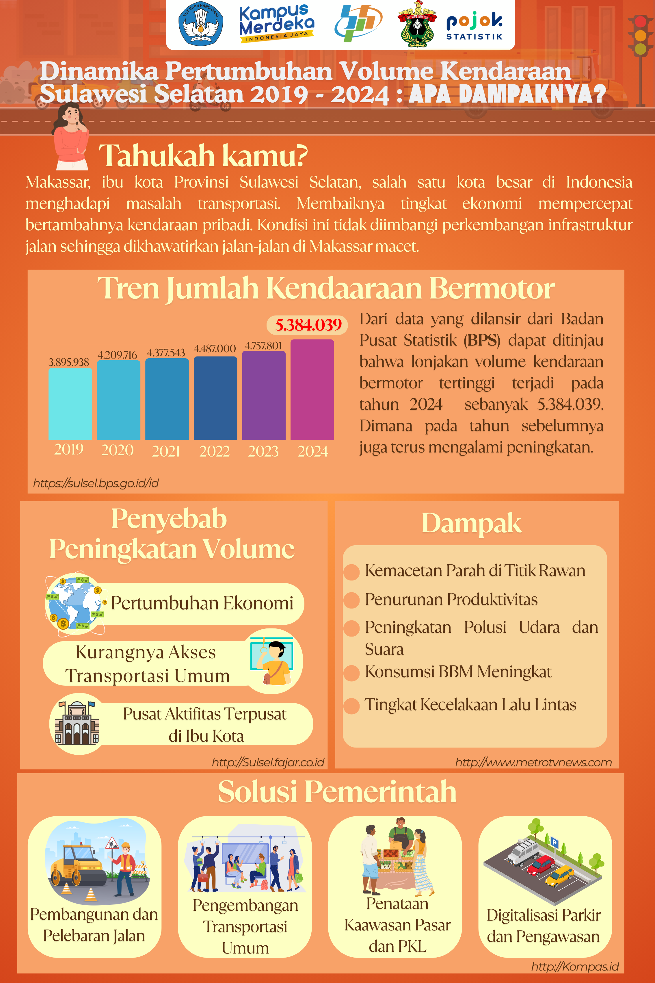 Infografis ini menggambarkan tren pertumbuhan jumlah kendaraan bermotor di Provinsi Sulawesi Selatan dari tahun 2019 hingga 2024. Melalui data dari BPS, diperlihatkan lonjakan signifikan yang...