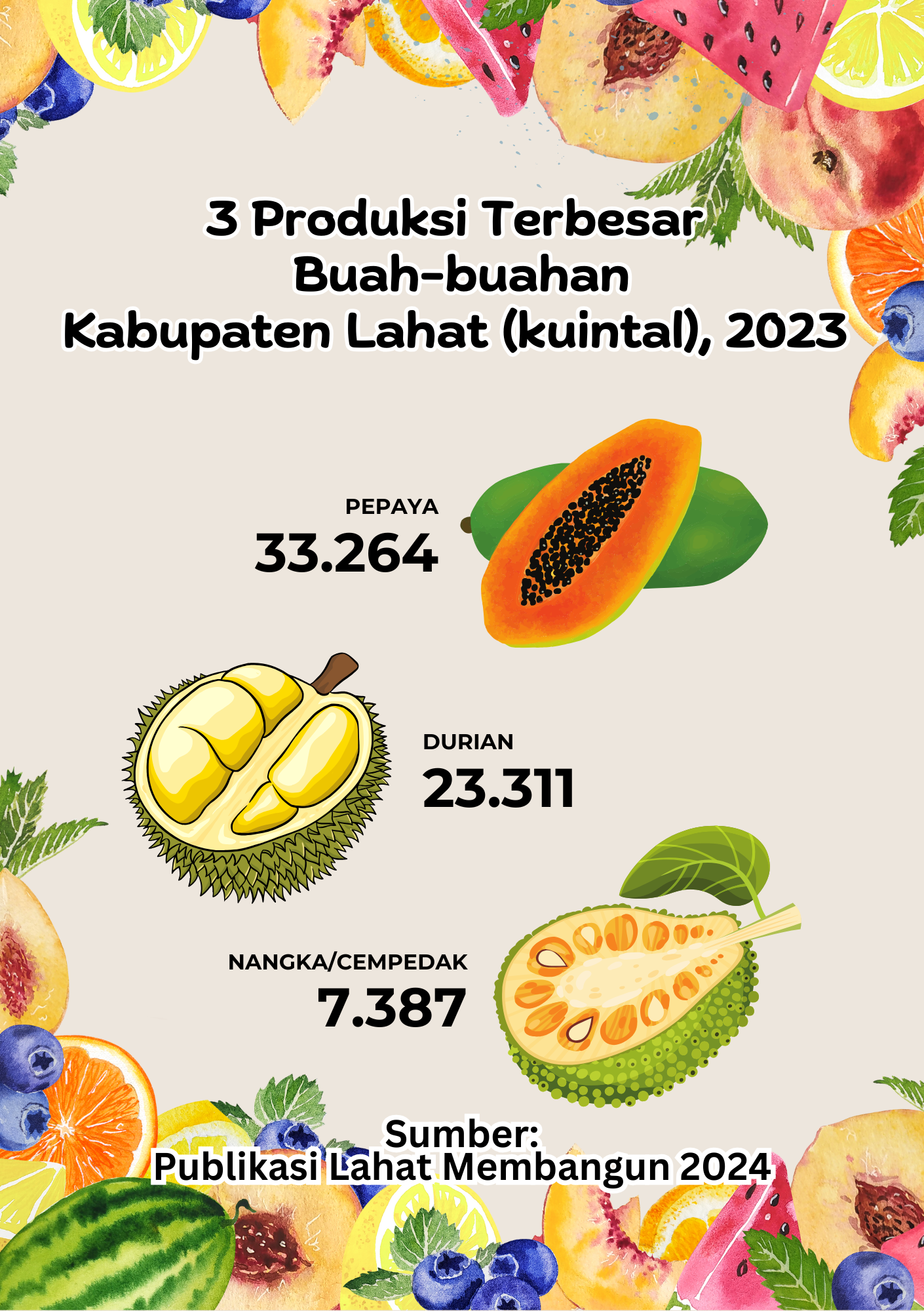 Tiga Produksi Terbesar Buah-Buahan di Kabupaten Lahat (Kuintal)