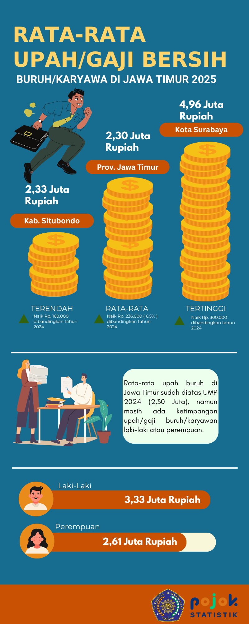 Rata-rata upah buruh di Jawa Timur sudah diatas UMP 2024 (2,3 juta) namun masih ada ketimpangan upah/gaji buruh/karyawan laki-laki atau perempuan