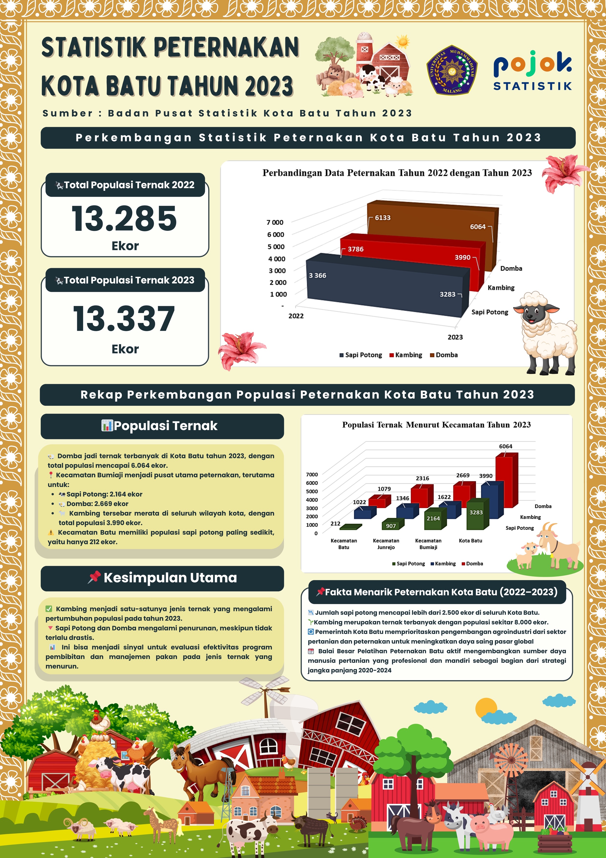 Jumlah sapi potong mencapai lebih dari 2.500 ekor di seluruh Kota Batu, sedangkan Kambing merupakan ternak terbanyak dengan populasi sekitar 8.000 ekor.