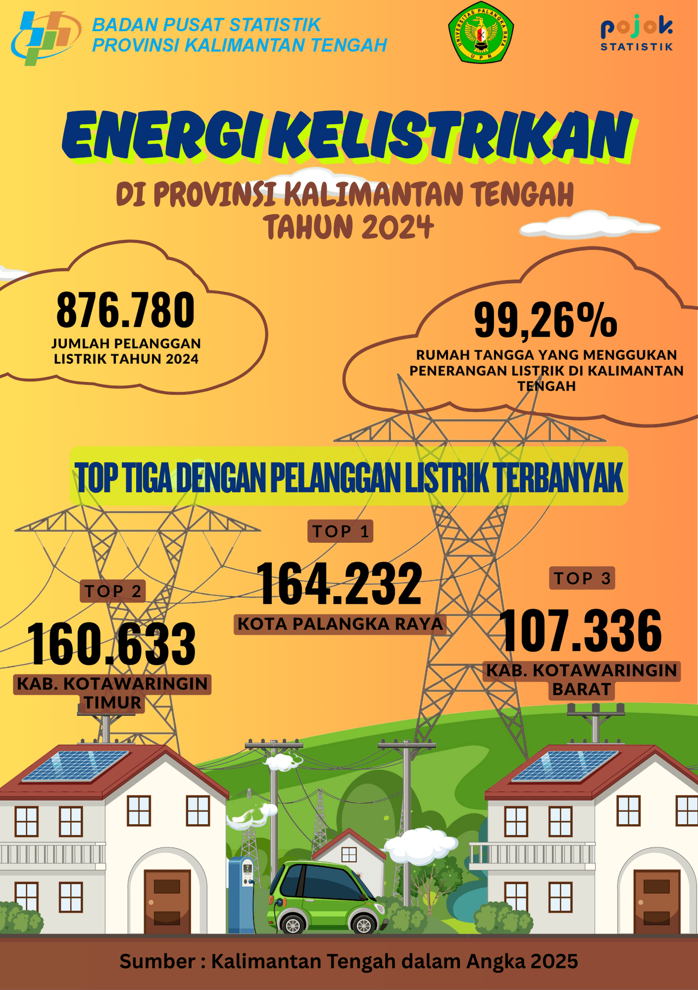 Kondisi Kelistrikan Yang ada di Kalimantan Tengah Tahun 2024 yang bersumber dari Kalimantan Tengah dalam Angka Tahun 2025