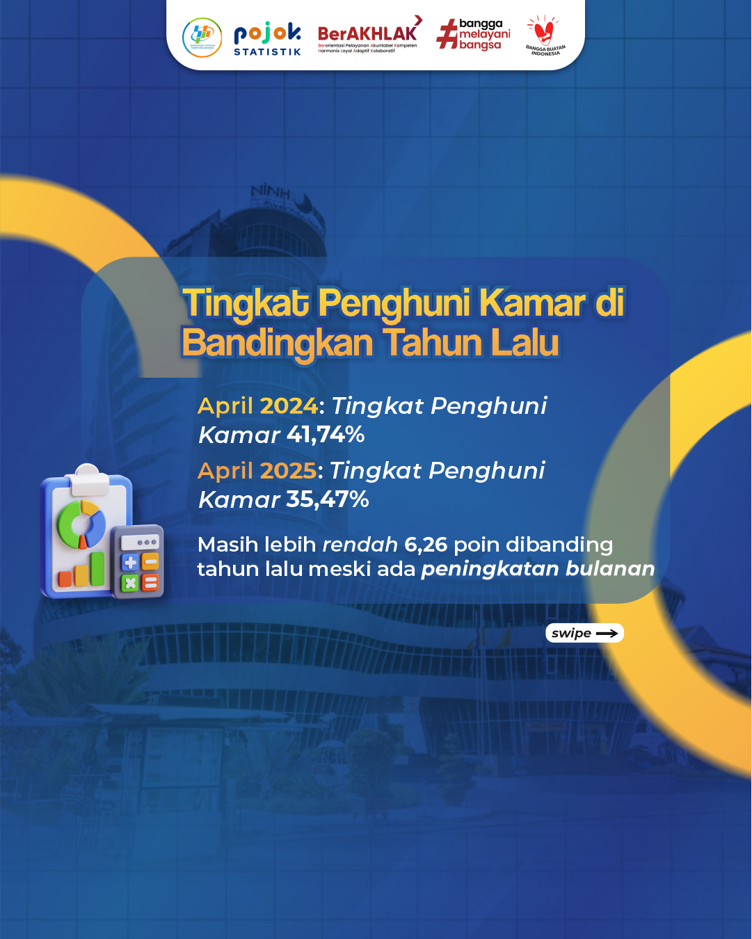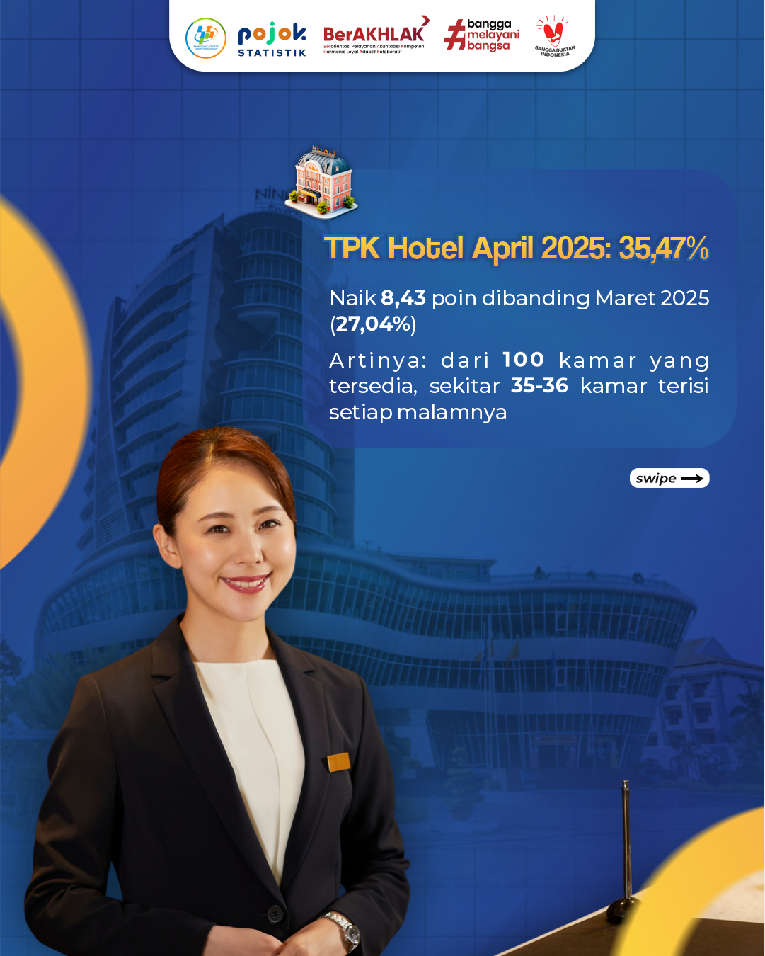 Dalam infografis ini berseries dan akan menampilkan Kondisi Hunian Hotel Sidoarjo April 2025