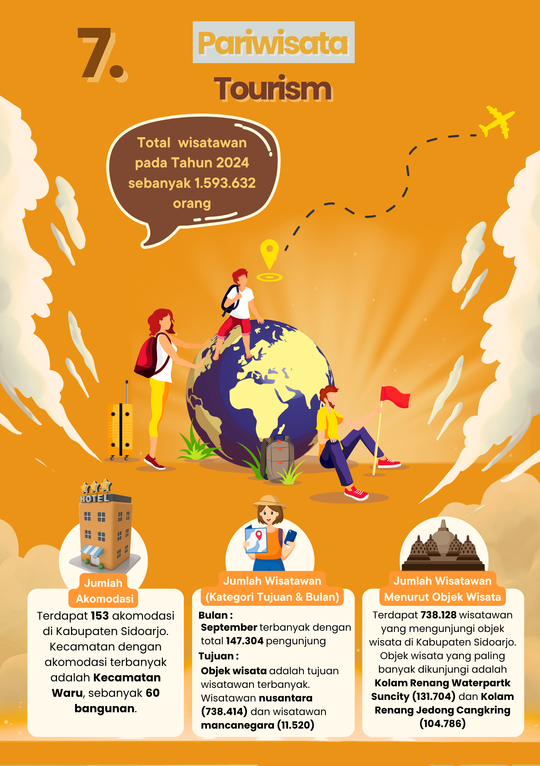 🌍✨ Pariwisata Kabupaten Sidoarjo Tahun 2024 Jumlah wisatawan yang berkunjung ke Kabupaten Sidoarjo pada tahun 2024 mencapai 1.593.632 orang. Angka ini menunjukkan antusiasme yang tinggi...