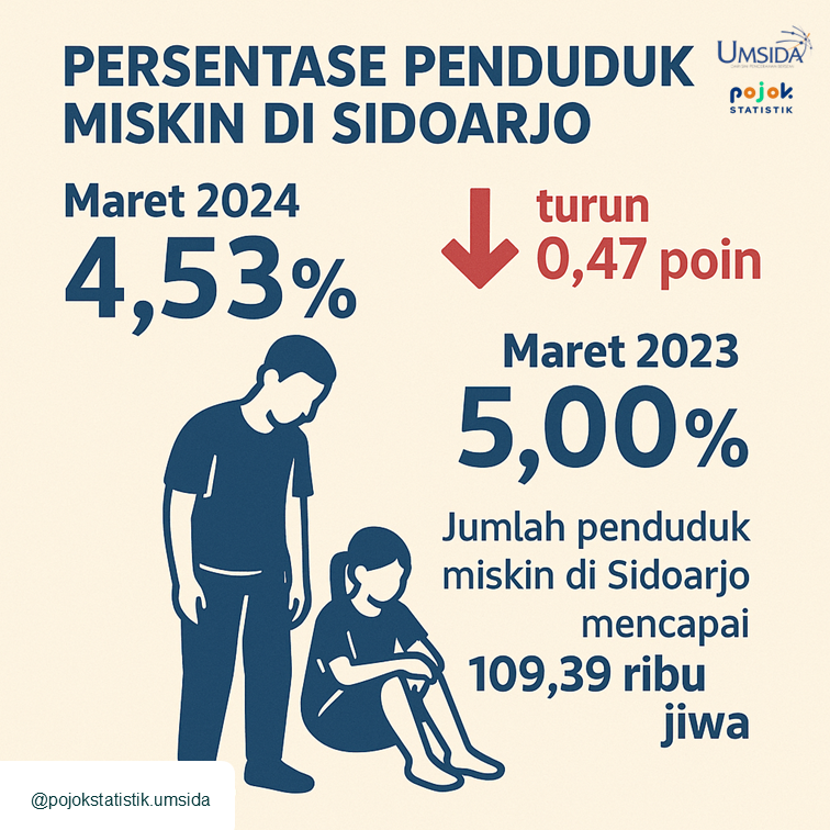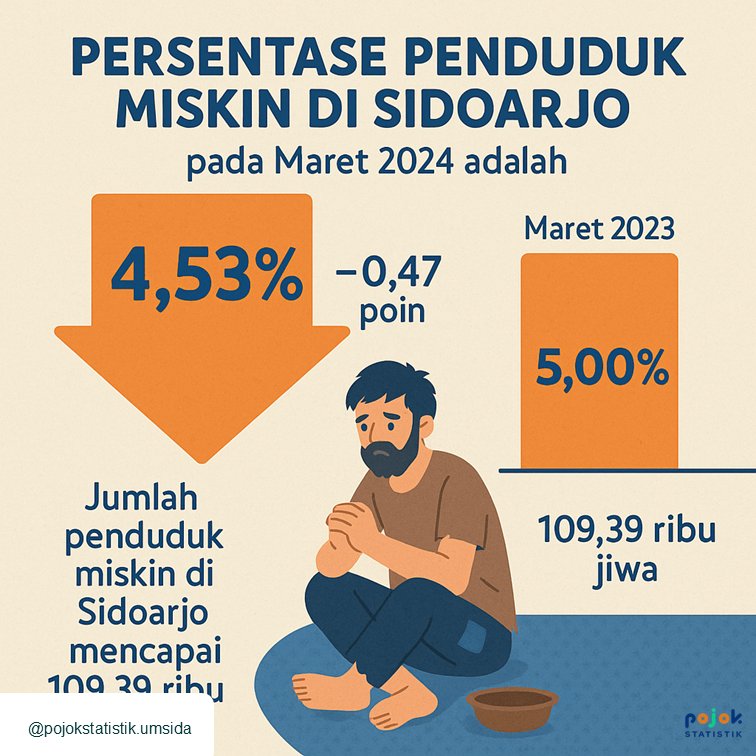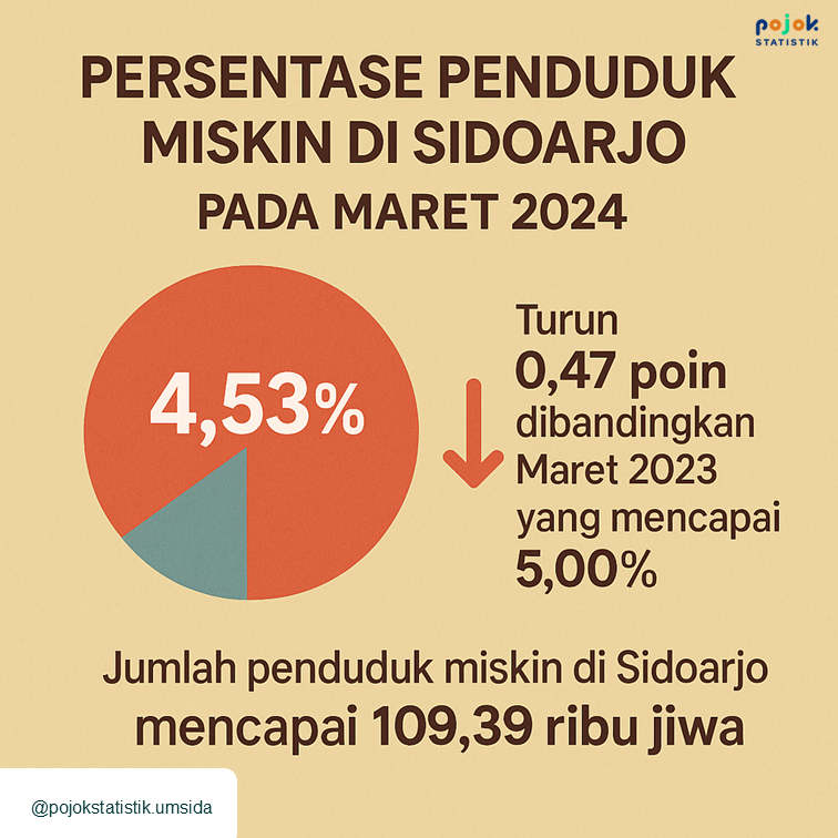 Sedikit demi sedikit, perubahan nyata terasa 🌱 Maret 2024, penduduk miskin di Sidoarjo turun jadi 4,53%. Bersama, kita jaga agar angka ini terus turun, bukan...