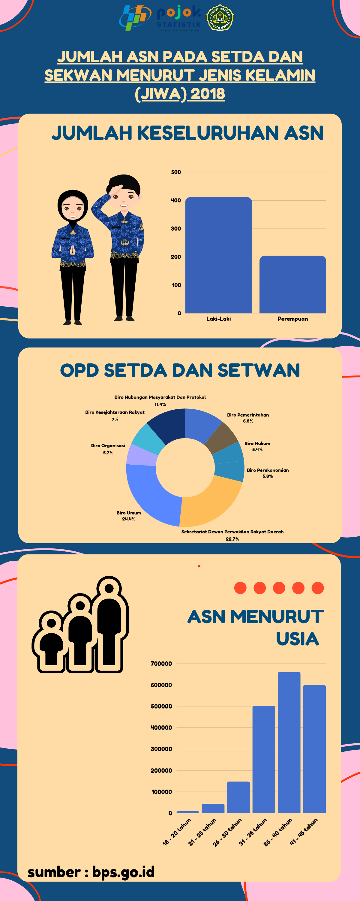 jumlah ASN pada setda dan setwan menurut jenis kelamin (2018)