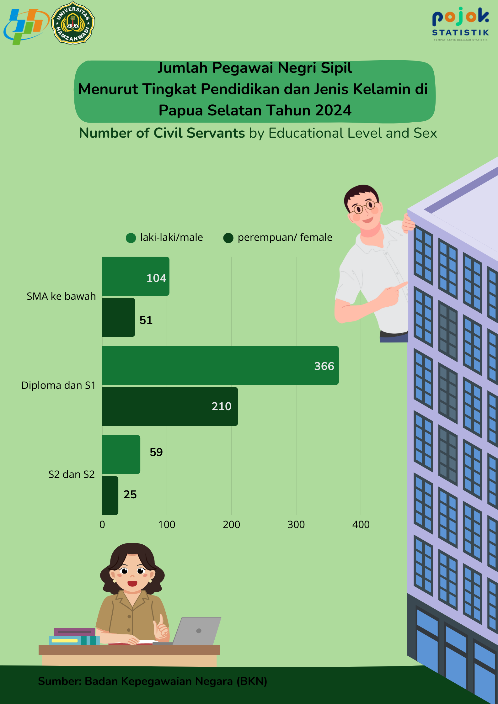 Jumlah Pegawai Negeri Sipil Menurut Tingkat Pendidikan dan Jenis Kelamin di Papua Selatan Tahun 2024