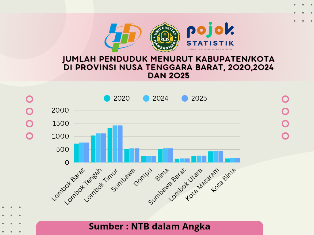 JUMLAH PENDUDUK MENURUT KABUPATEN/KOTA DI PROVINSI NUSA TENGGARA BARAT, 2020,2024,DAN 2025