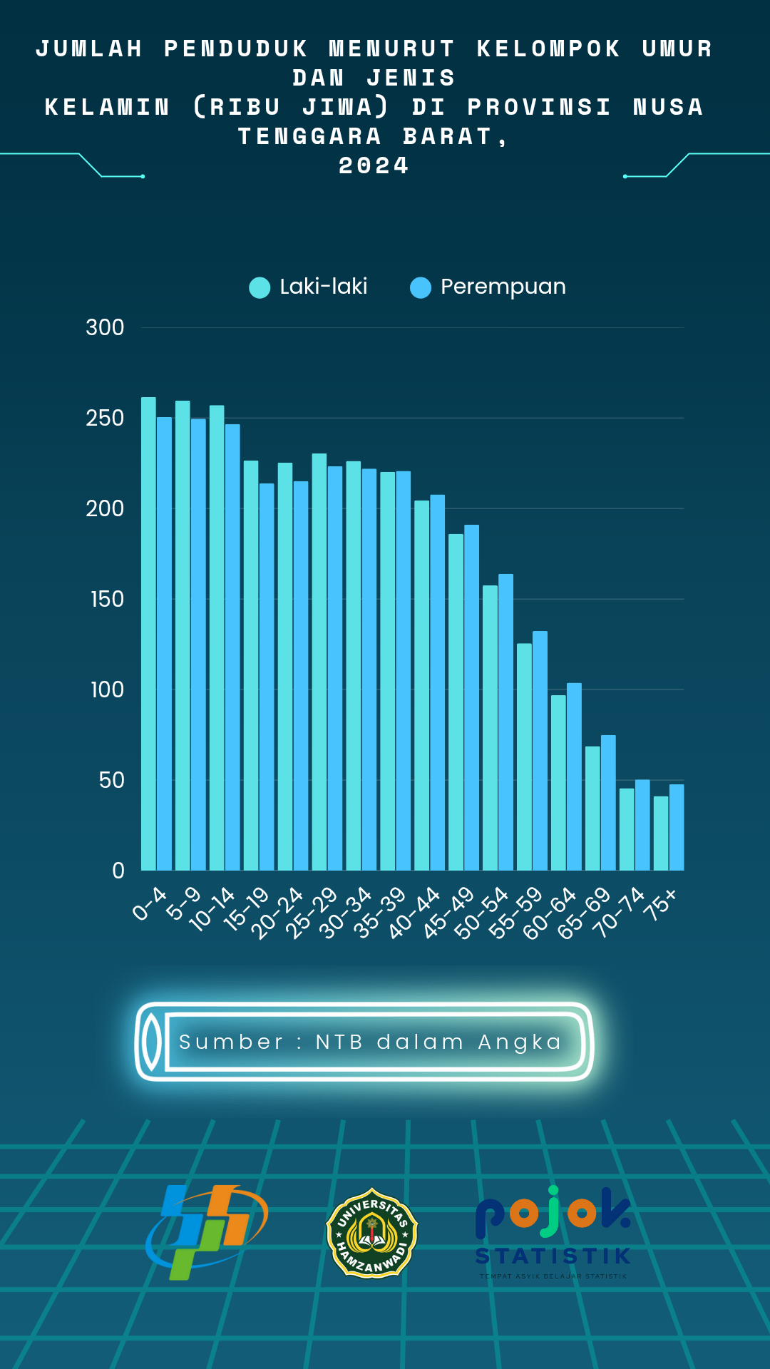 JUMLAH PENDUDUK MENURUT KELOMPOK UMUR DAN JENIS KELAMIN DI PROVINSI NUSA TENGGARA BARAT, 2024