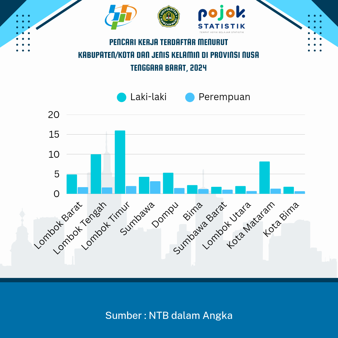 PENCARI KERJA TERDAFTAR MENURUT KABUPATEN/KOTA DAN JENIS KELAMIN DI PROVINSI NUSA BARAT, 2024