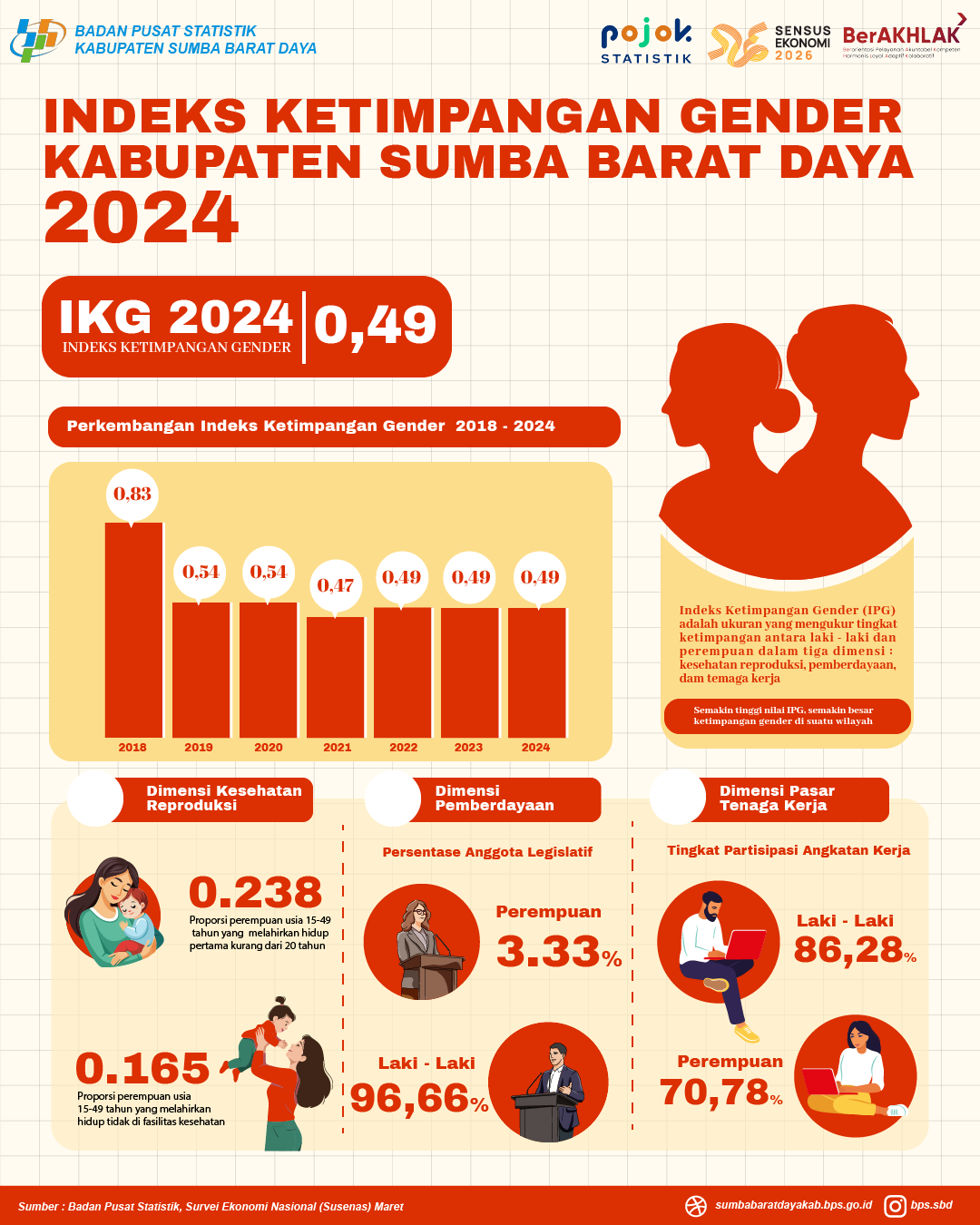 Indeks Ketimpangan Gender Kabupaten Sumba Barat Daya Tahun 2024 sebesar 0.49