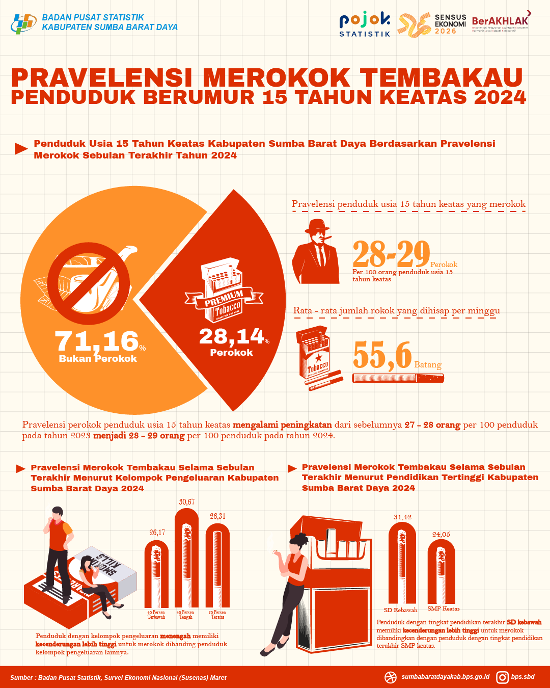 Pravelensi penduduk usia 15 Tahun keats yang merokok 28-29 Penduduk per 100 Orang Penduduk Usia 15 Tahun ke Atas