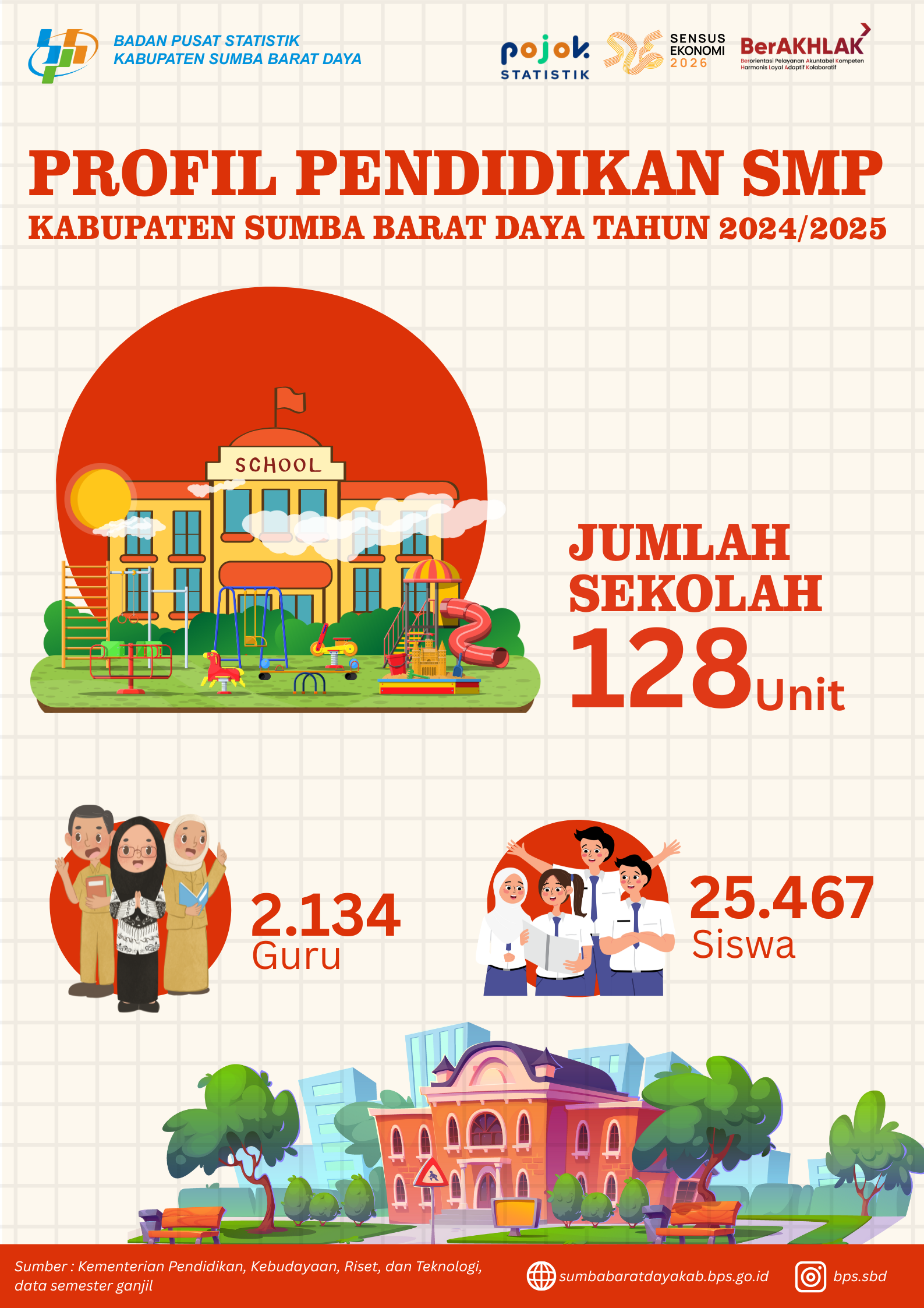 Jumlah SMP sebanyak 128 Unit dengan 2.134 Guru dan 25.467 Siswa
