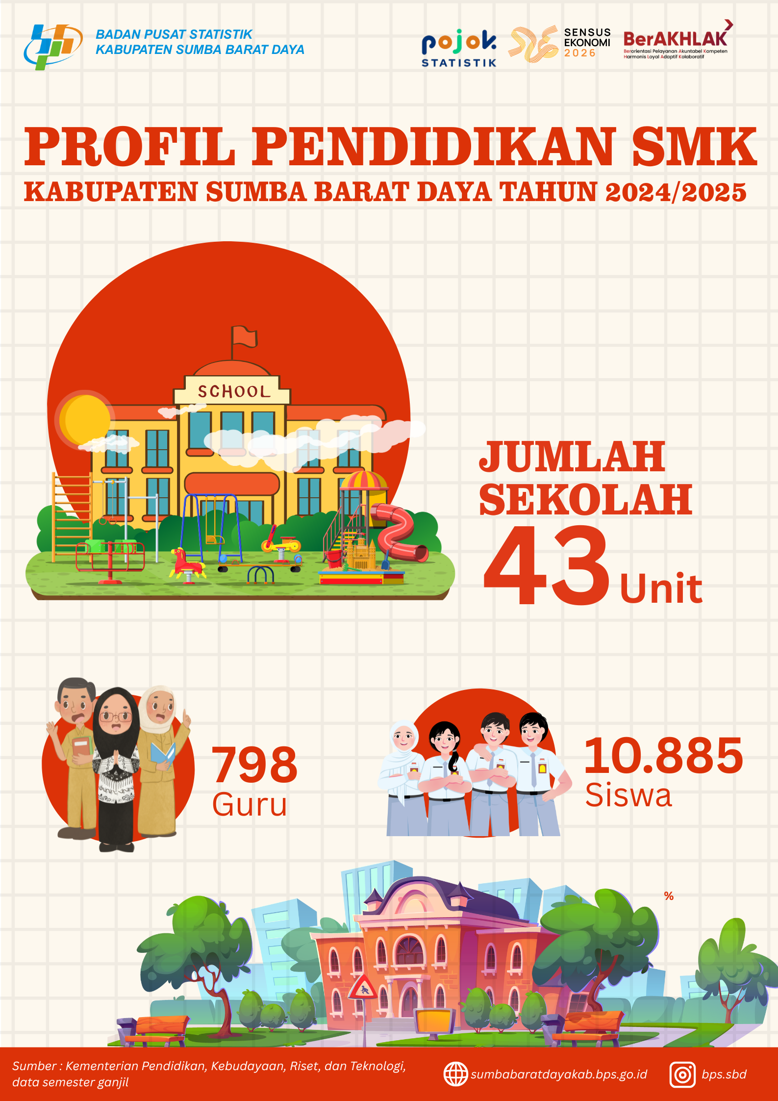 Jumlah SMK Sebanyak 43Unit, dengan 798Guru dan 10.885 Siswa