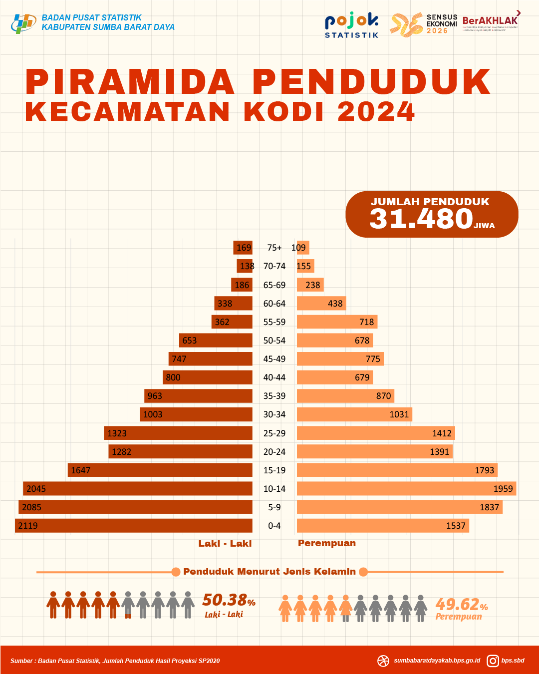 Jumlah penduduk Kecamatan Kodi 31.480 JIwa
