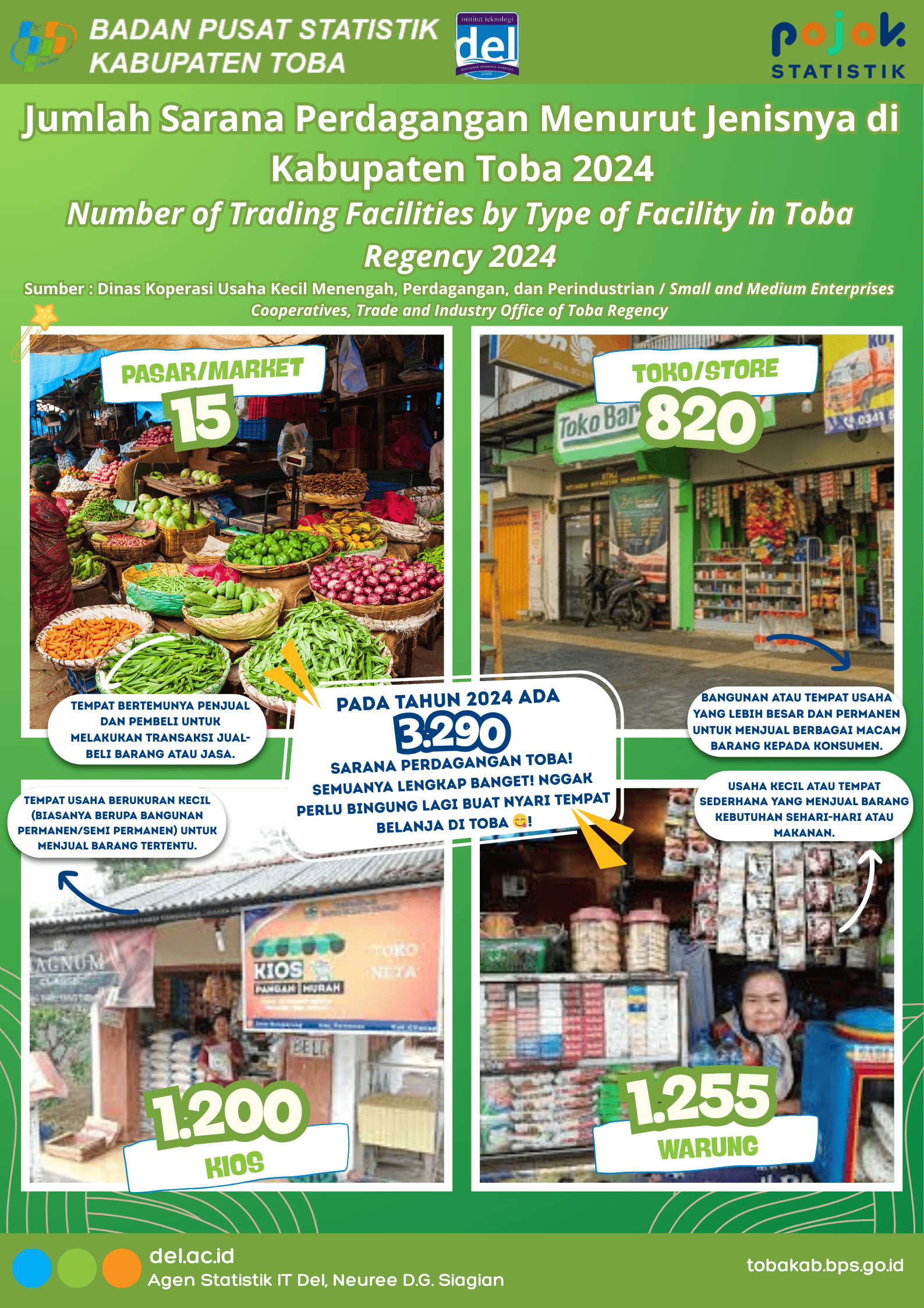 🛍️ Belanja di Toba nggak perlu bingung! Tahun 2024 tercatat ada 3.290 sarana perdagangan yang tersebar di seluruh Kabupaten Toba. Dari 15 pasar, 820 toko,...