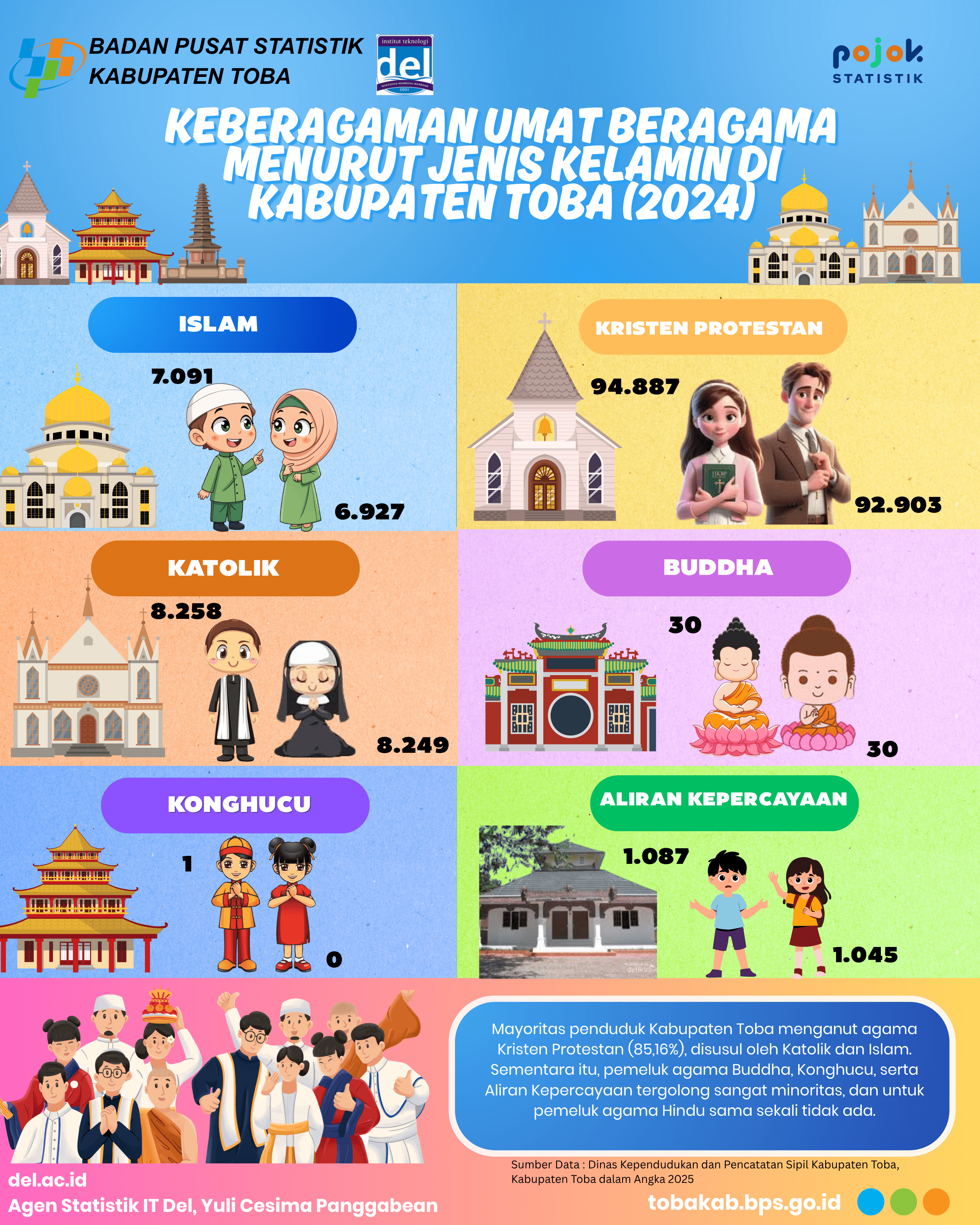 ✨ Potret Keberagaman Kabupaten Toba 2024 ✨ Mayoritas penduduk Toba menganut Kristen Protestan, disusul Katolik dan Islam. Meski pemeluk agama lain tergolong minoritas, keberagaman tetap...