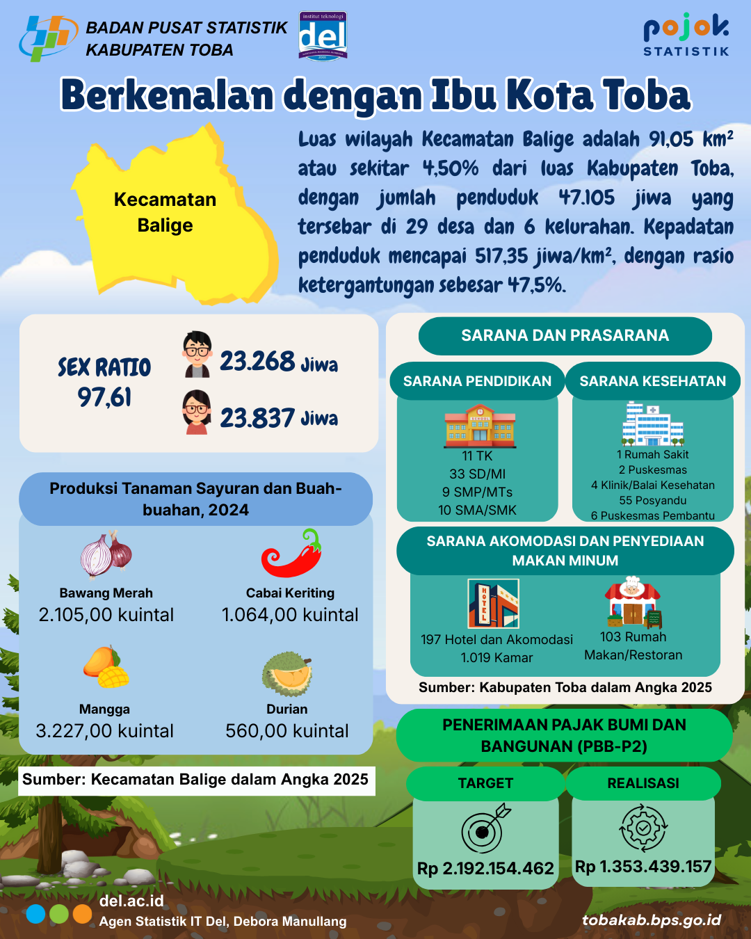 Balige sebagai pusat aktivitas menyajikan berbagai informasi penting—mulai dari jumlah penduduk, sarana pendidikan dan kesehatan, hingga data produksi pertanian dan penerimaan pajak daerah. Melalui infografis...