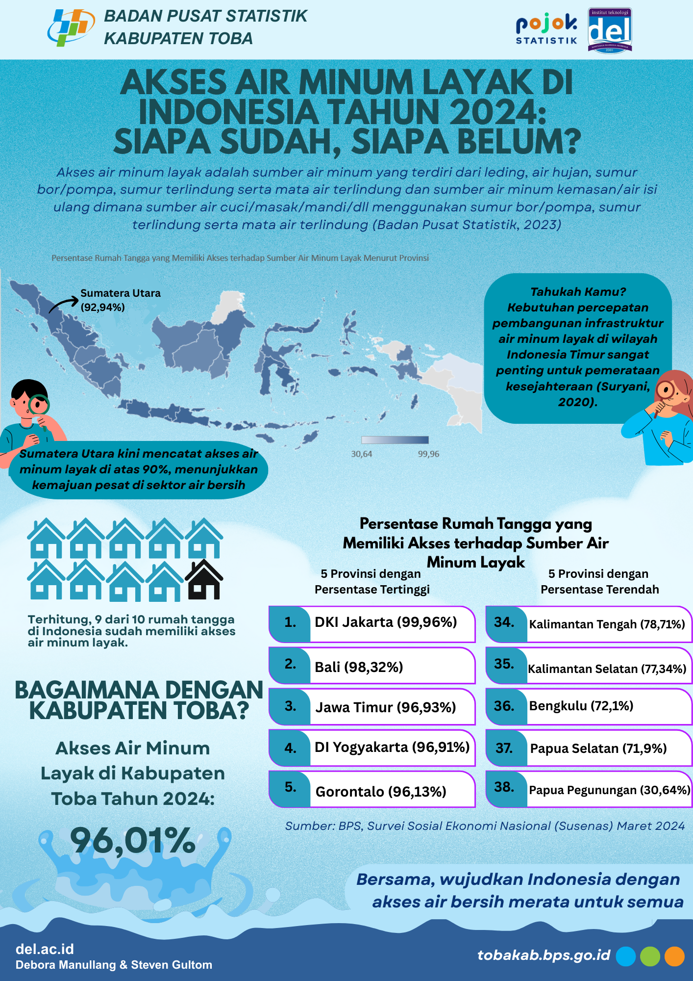 Akses air minum layak adalah sumber air minum yang terdiri dari leding, air hujan, sumur bor/pompa, sumur terlindung serta mata air terlindung dan sumber air...