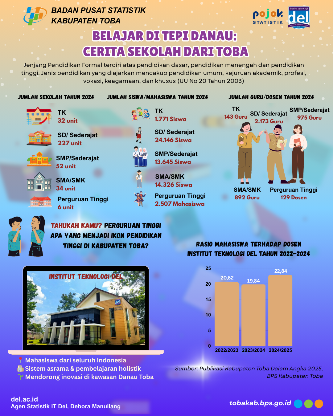 #SahabatData, udah tau belum potret pendidikan di Kabupaten Toba tahun 2024? Mulai dari jumlah sekolah, siswa, guru, sampai ikon pendidikan tinggi di tepi Danau Toba—semuanya...