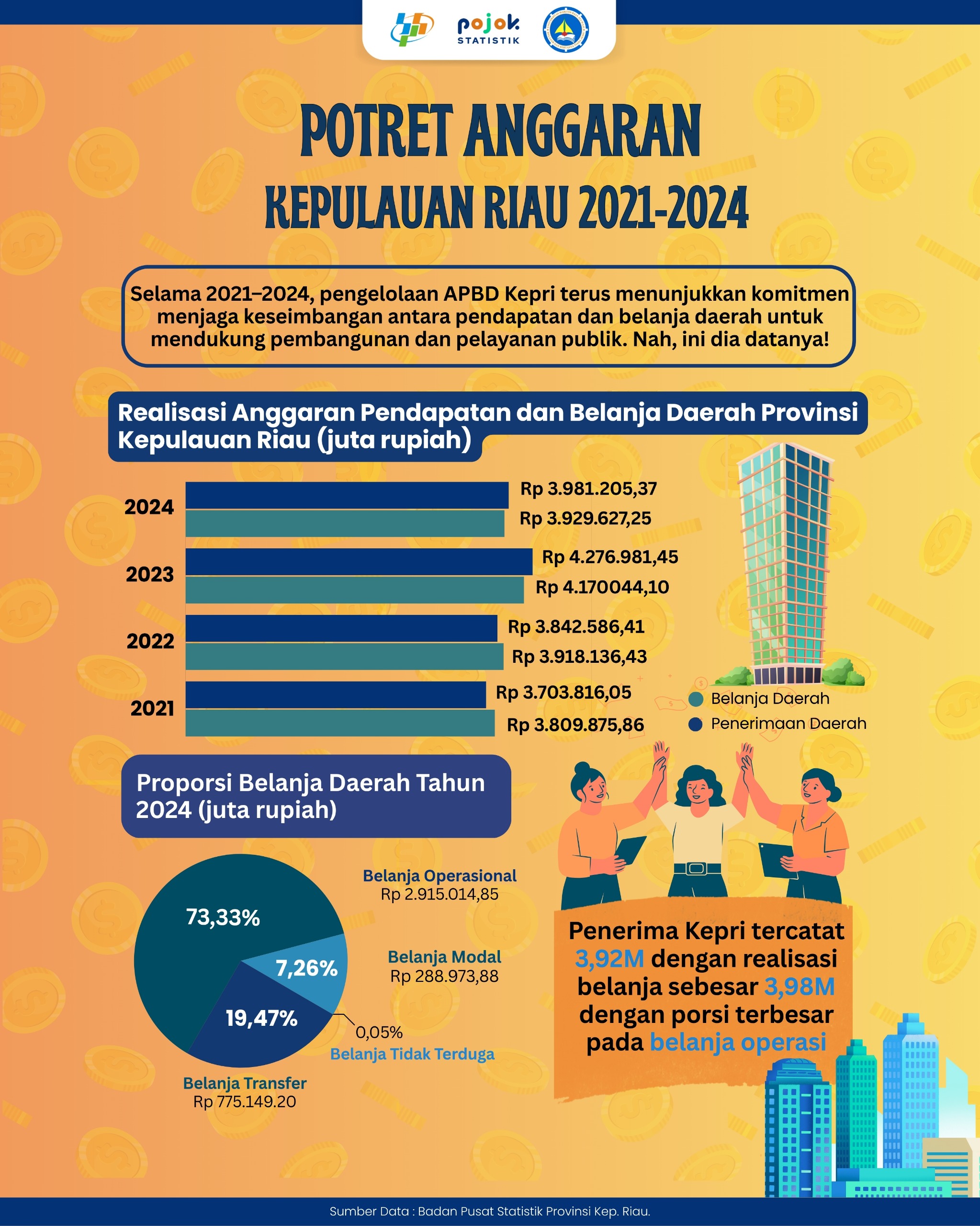 📊 Potret Anggaran Kepulauan Riau 2021–2024 Selama empat tahun terakhir, pengelolaan APBD Provinsi Kepulauan Riau terus menunjukkan upaya menjaga keseimbangan antara penerimaan dan belanja daerah....