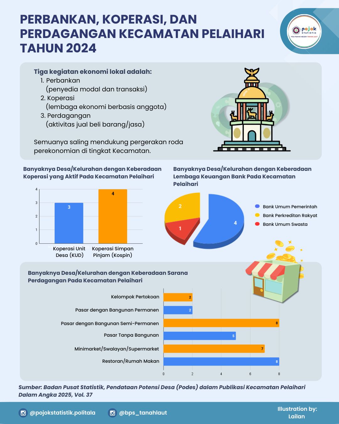 Perbankan, Koperasi, dan Perdagangan Kecamatan Pelaihari Tahun 2024