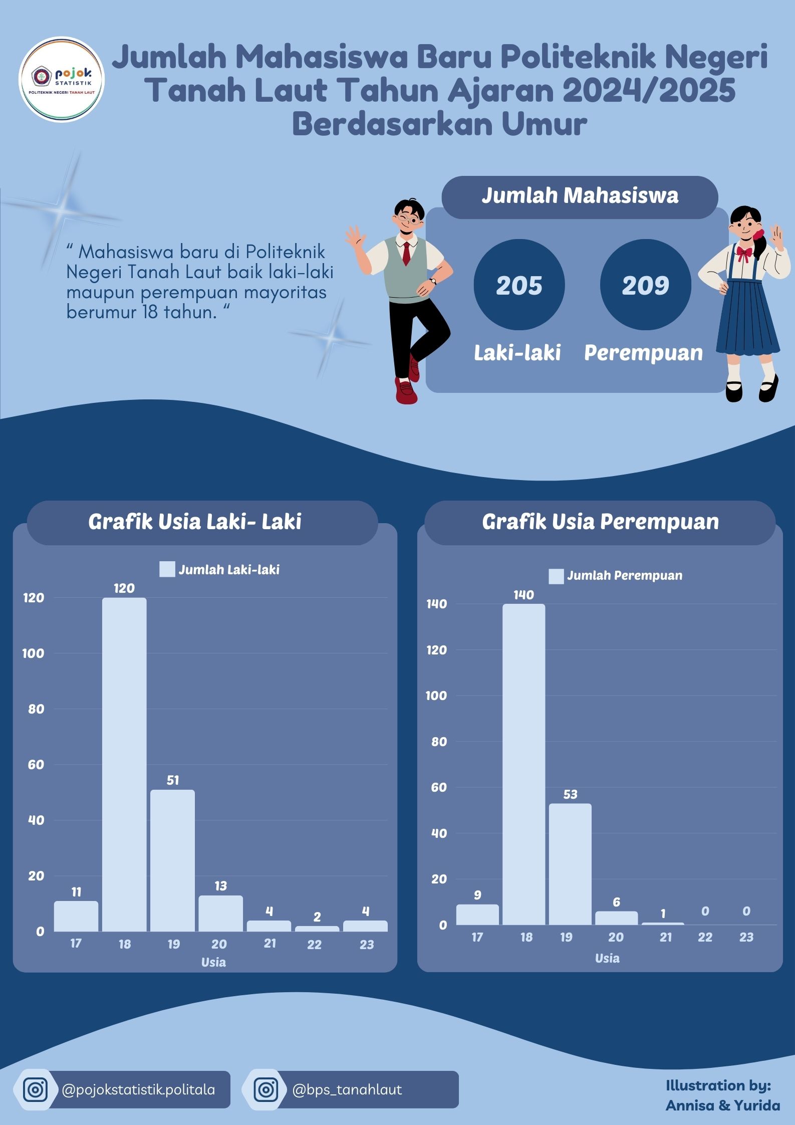 Jumlah Mahasiswa Baru Politeknik Negeri Tanah Laut Tahun Ajaran 2024/2025 Berdasarkan Umur