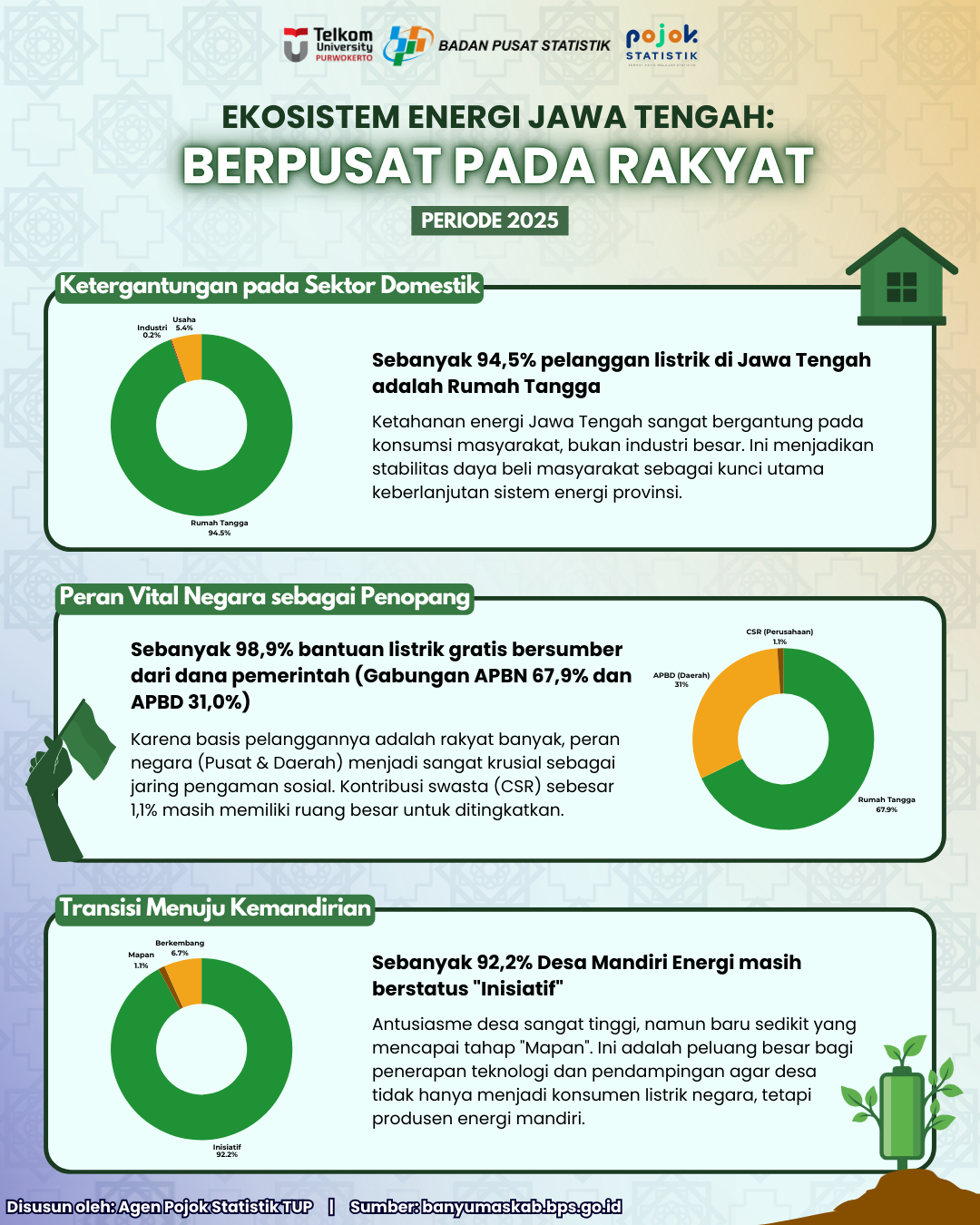 Infografis berjudul “Ekosistem Energi Jawa Tengah: Berpusat pada Rakyat Periode 2025” menunjukkan bahwa sistem energi di Jawa Tengah sangat bergantung pada masyarakat, dengan 94,5% pelanggan...