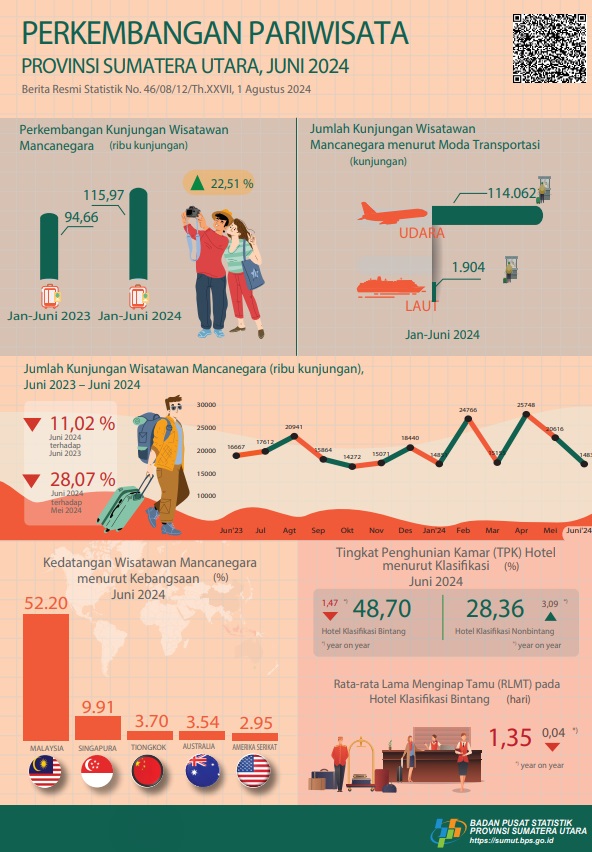 Perkembangan Pariwisata Sumatera Utara pada Juni 2024
