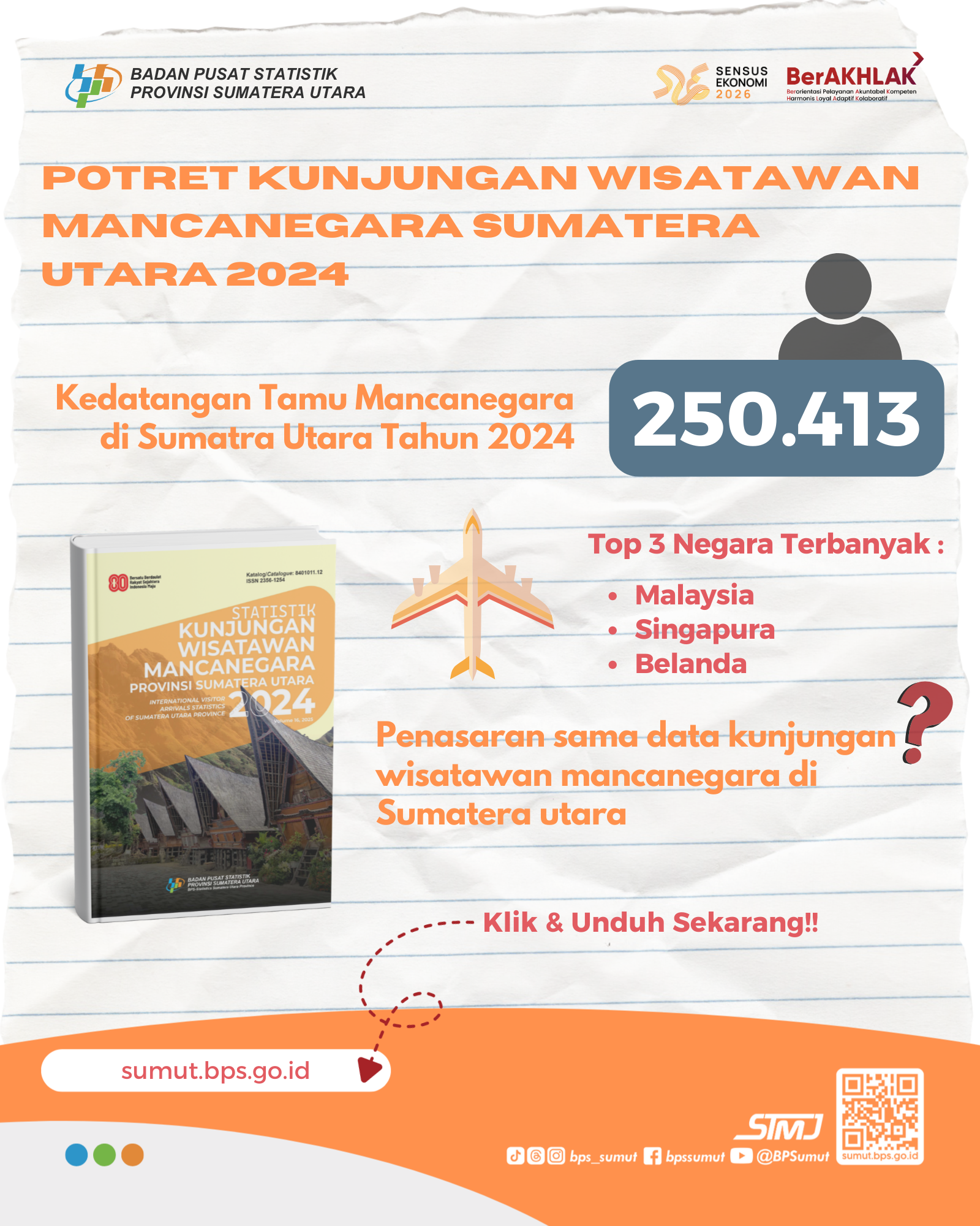 Kedatangan Tamu Mancanegara di Sumatra Utara Tahun 2024 Sebanyak 250.413. Dan Bagaimana Potret Kunjungan Wisatawan Mancanegara Sumatera Utara 2024, Unduh Publikasinya di sumut.bps.go.id