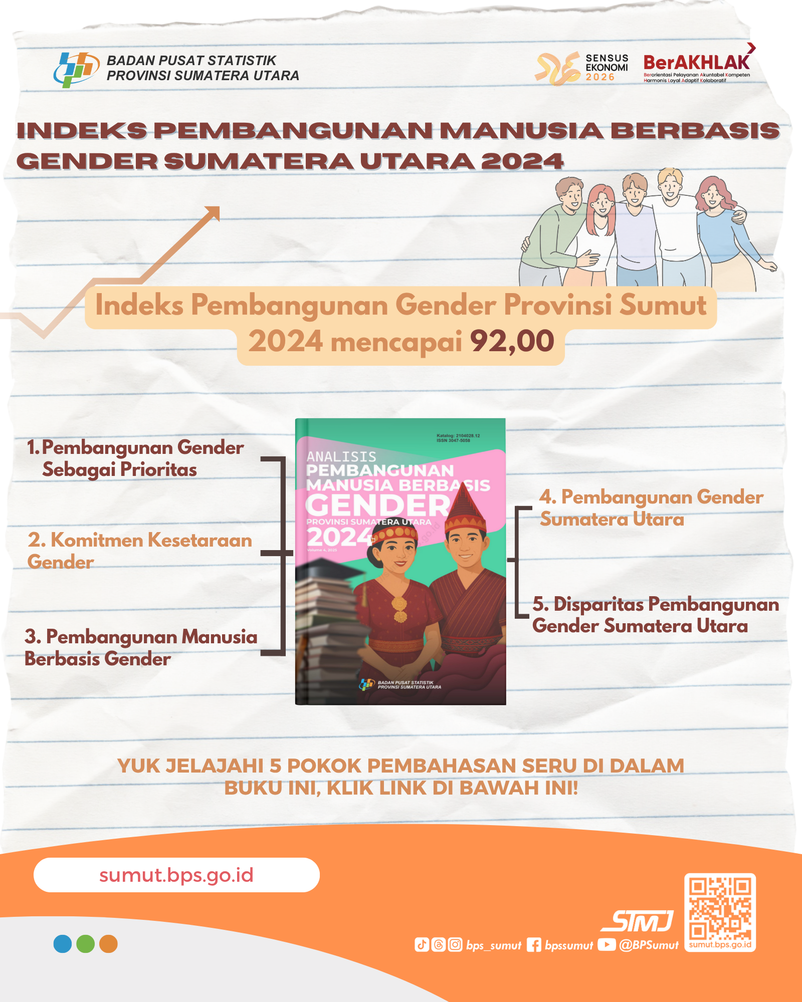 Indeks Pembangunan Gender Provinsi Sumut 2024 mencapai 92,00, Bagaimana Pembangunan Manusia menurut Gender di Sumatera Utara, Unduh Publikasinya di sumut.bps.go.id