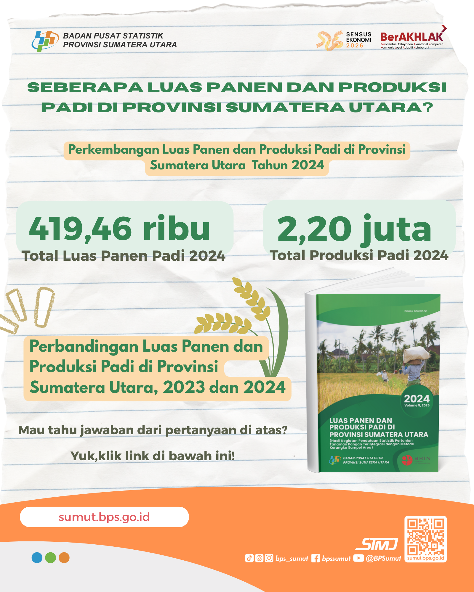 Seberapa luas panen dan produksi padi di Provinsi Sumatera Utara? Unduh Publikasinya di sumut.bps.go.id
