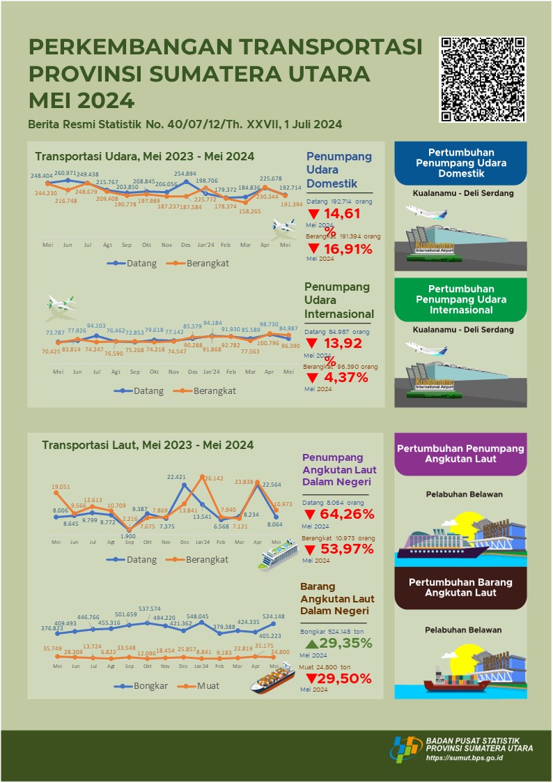 Jumlah penumpang domestik yang datang ke Sumatera Utara melalui pintu Bandara Internasional Kualanamu pada Mei 2024 mencapai 192.714 orang, atau turun 14,61 persen dibanding bulan...