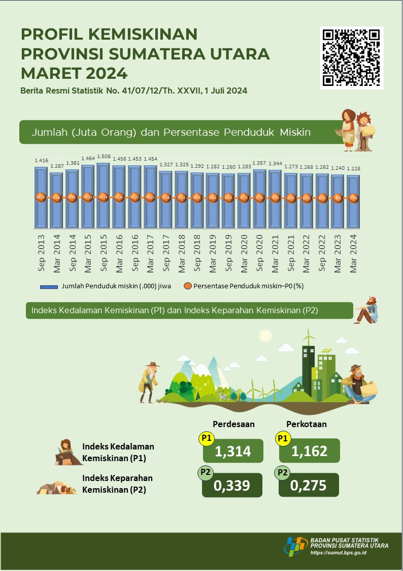 Angka kemiskinan Sumatera Utara mengalami penurunan sebesar 0,16 poin yaitu dari 8,15 persen pada Maret 2023 menjadi 7,99 persen pada Maret 2024. Angka kemiskinan ini...