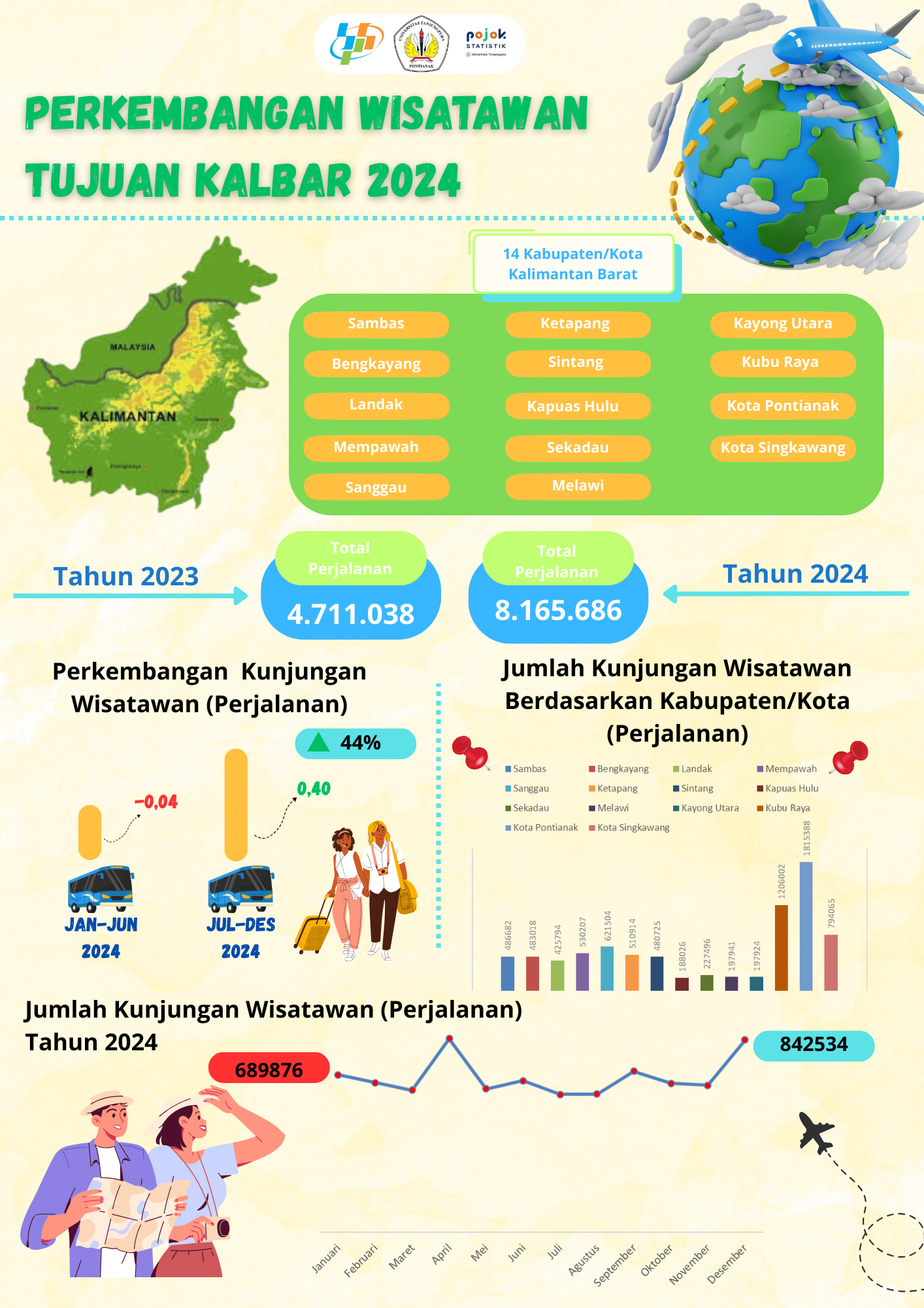 Perkembangan Wisatawan Tujuan Kalimantan Barat 2024