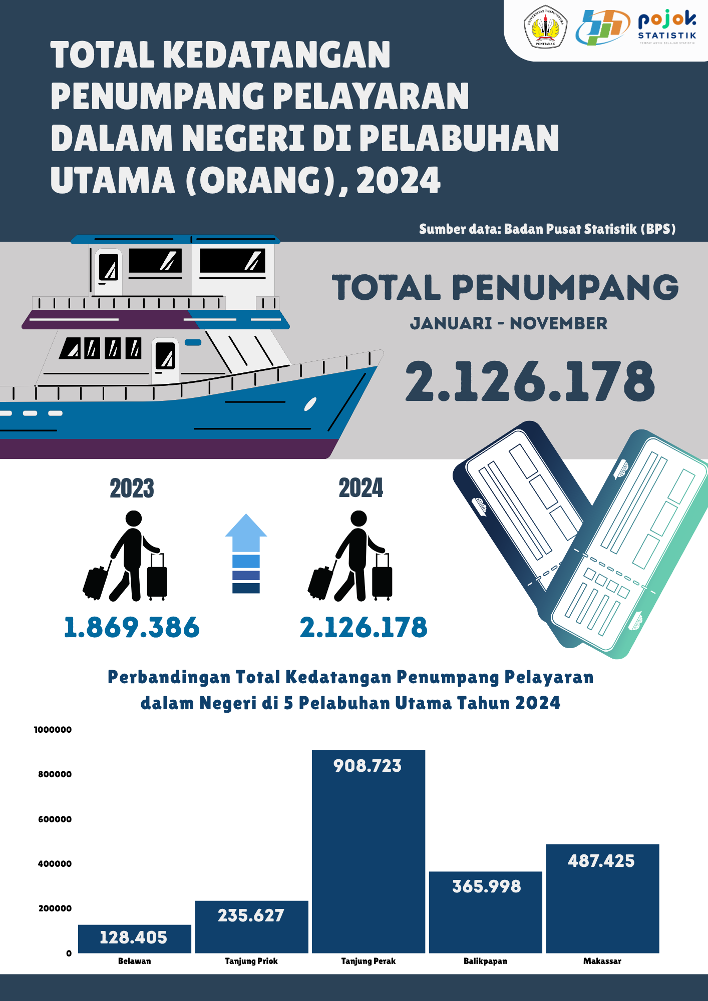 Total Kedatangan Penumpang Pelayaran Dalam Negeri di Pelabuhan Utama (Orang), 2024