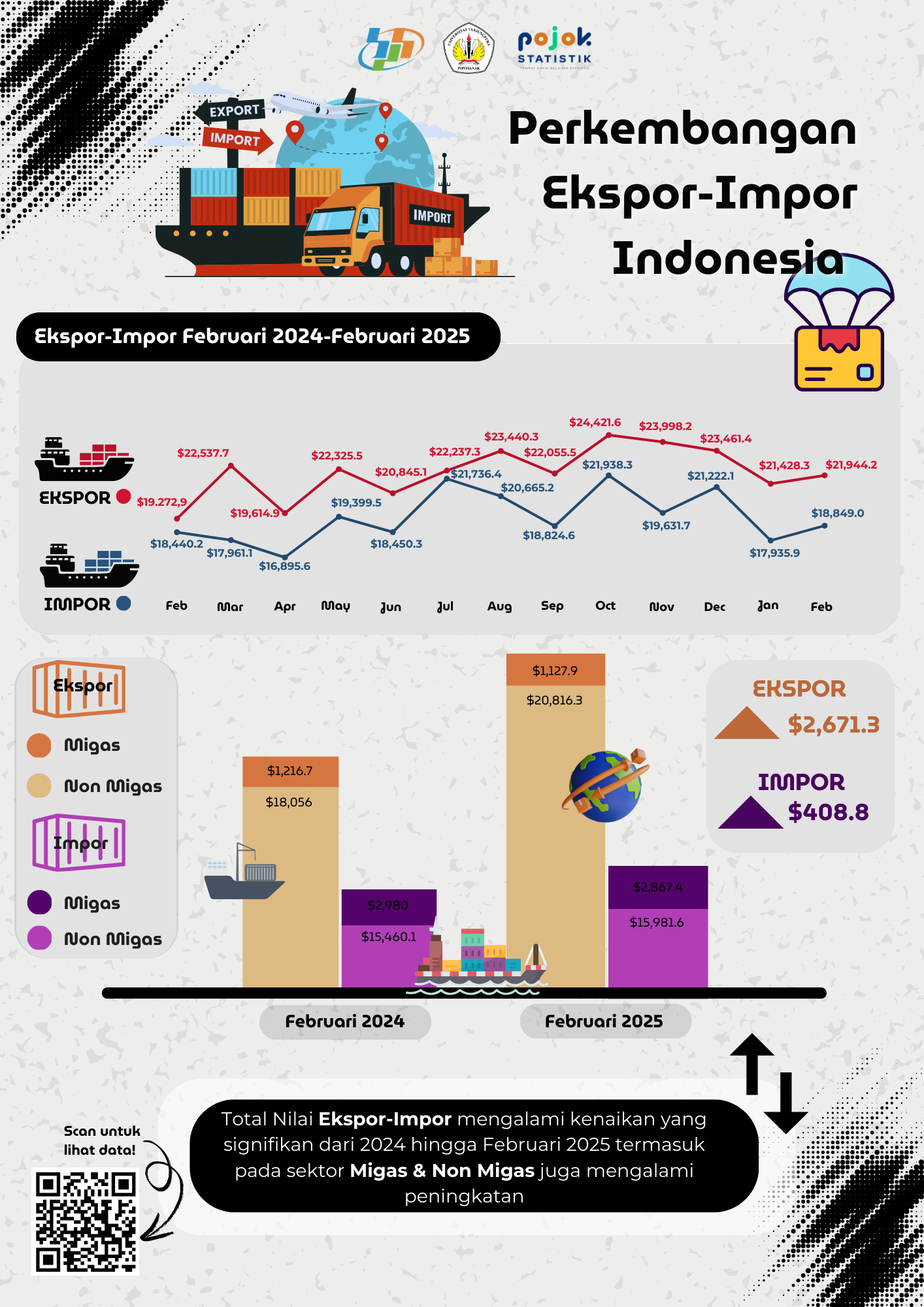 Perkembangan Ekspor-Impor Indonesia Februari 2024-Februari 2025