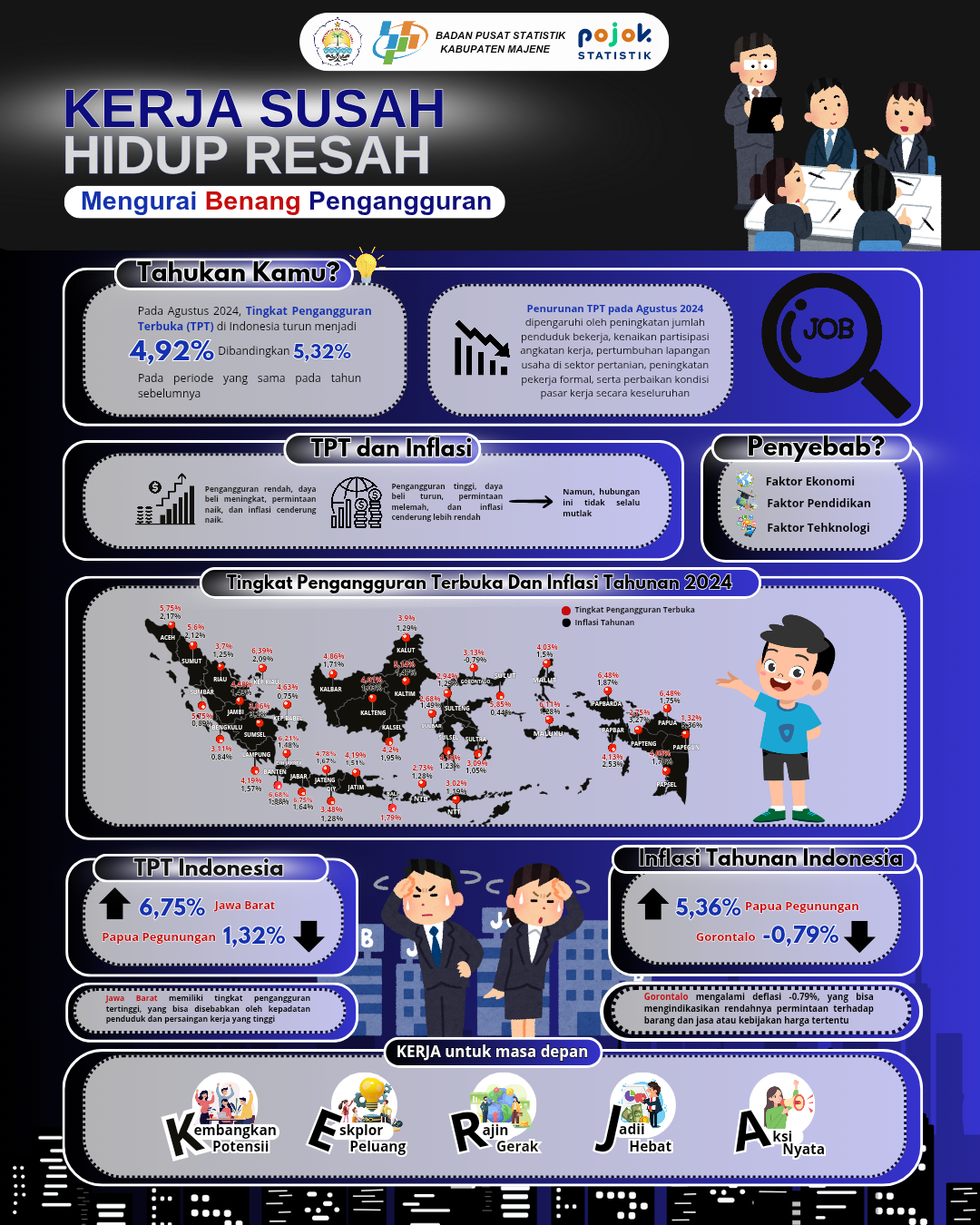 Pada Agustus 2024, tingkat pengangguran terbuka (TPT) Indonesia menurun menjadi 4,92% dari 5,32% tahun sebelumnya. Penurunan ini dipengaruhi oleh pertumbuhan penduduk usia kerja, meningkatnya partisipasi...