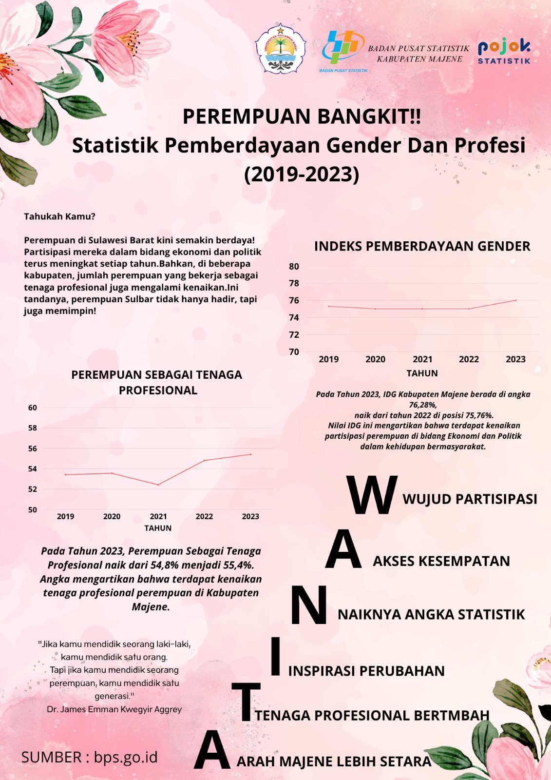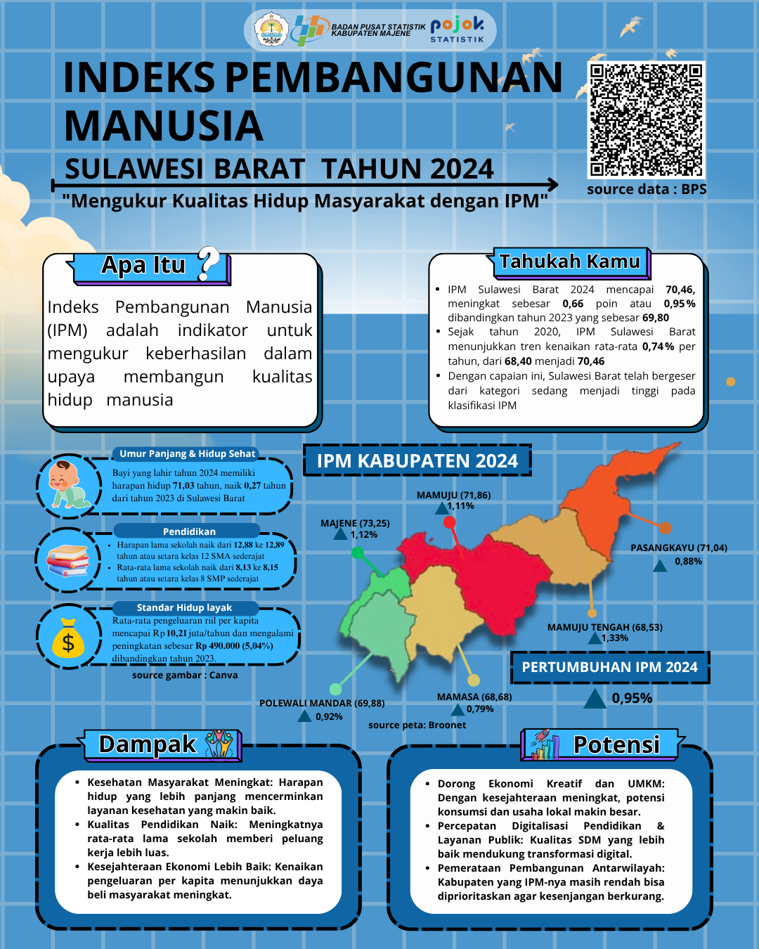Promosi data BPS Kabupaten Majene terkait data Indeks Pembangunan Manusia Kabupaten Majene serta variabel pembentuknya tahun 2018 - 2023