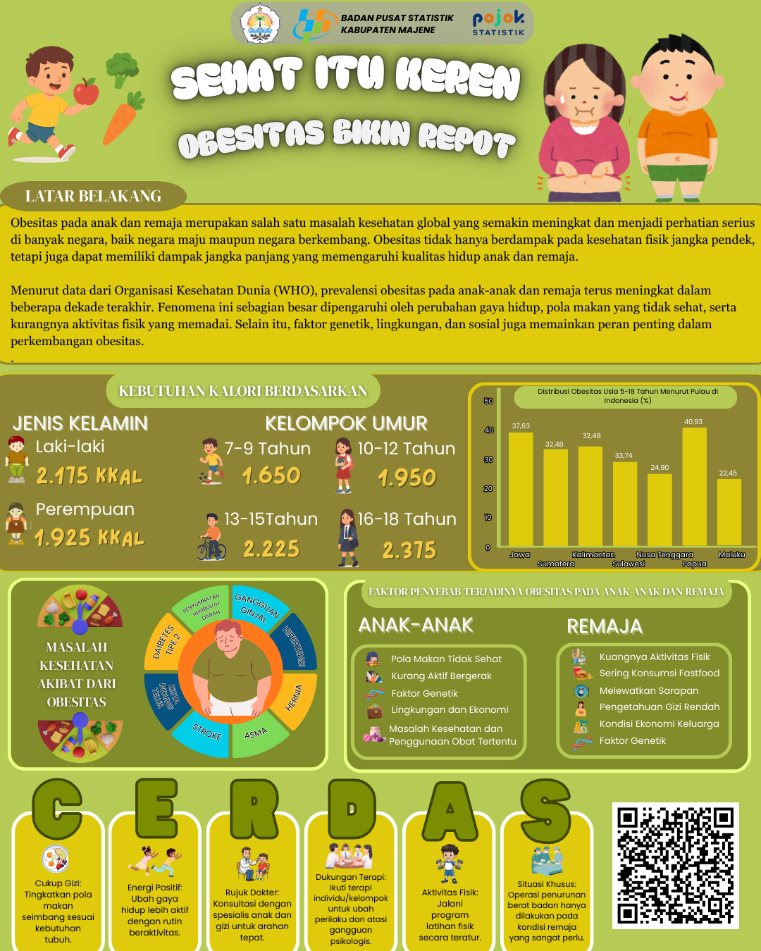 Infografis ini mengingatkan bahwa obesitas pada anak dan remaja makin meningkat, dipicu pola makan tidak sehat, kurang aktivitas, dan faktor genetik. Dampaknya serius bagi kesehatan,...