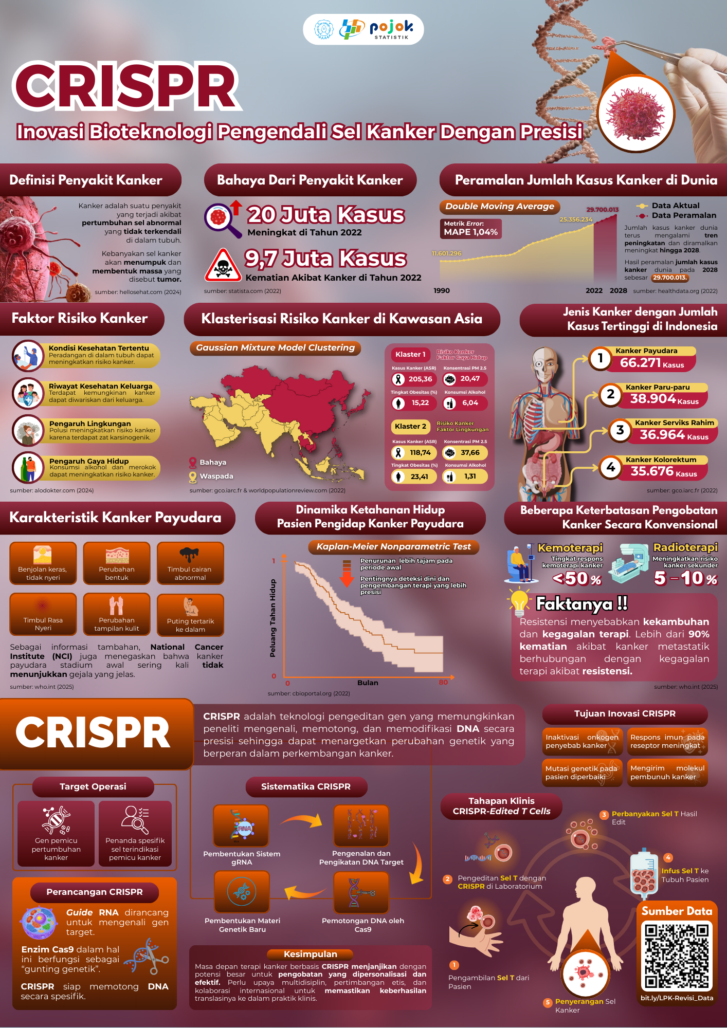 Teknologi CRISPR diperkenalkan sebagai pendekatan terapi presisi berbasis data dan genetika yang berpotensi meningkatkan efektivitas pengobatan kanker melalui penyuntingan gen yang lebih terarah dan personal.