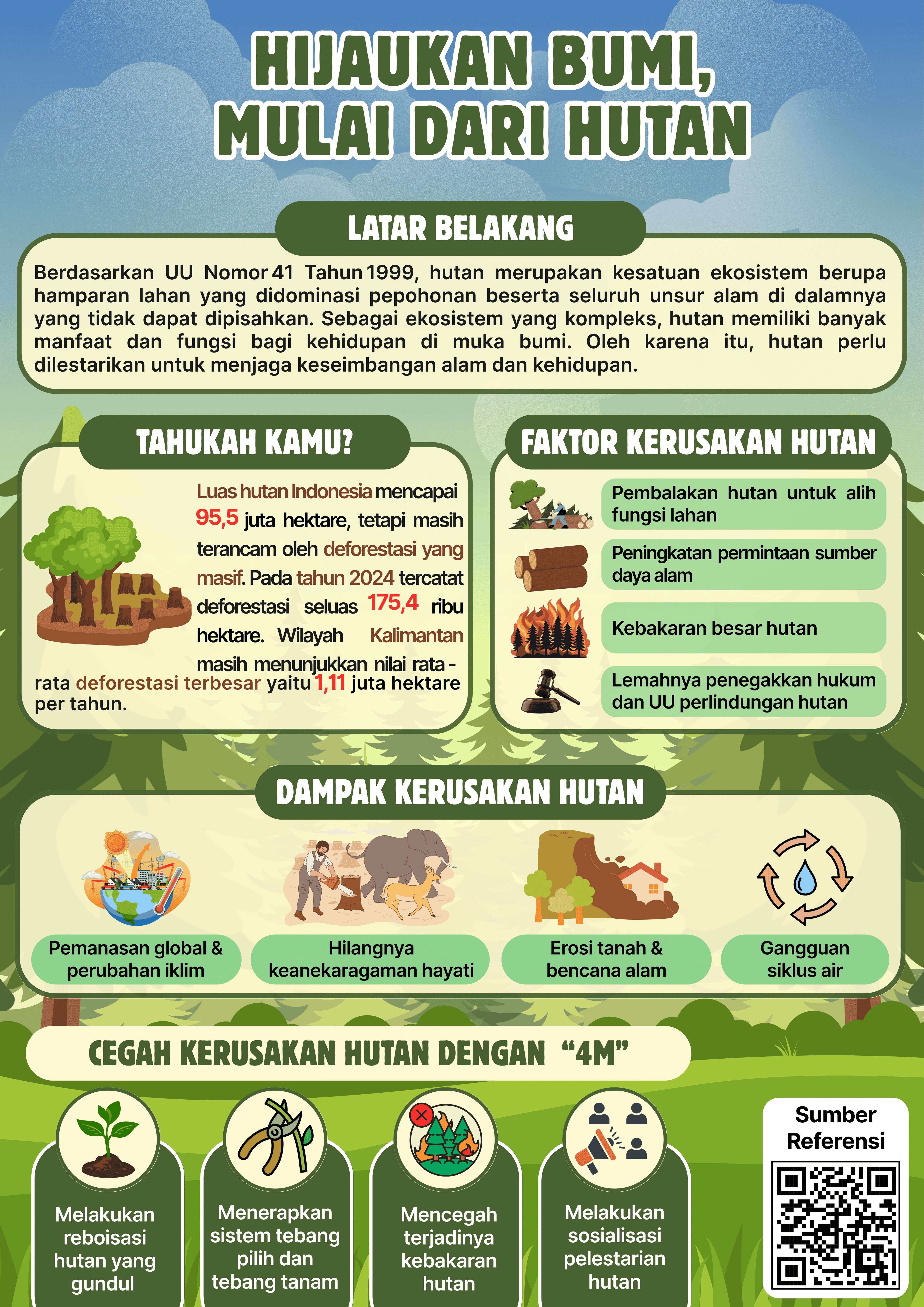 Berdasarkan UU No. 41 Tahun 1999, hutan merupakan kesatuan ekosistem berupa hamparan lahan yang didominasi pepohonan beserta seluruh unsur alam didalamnya yang tidak dapat dipisahkan....